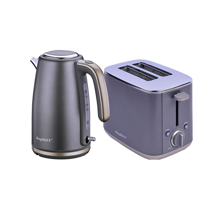 Berghoff Gem Pearl 1.7 Li̇tre Gri̇ Gold Modern Su Isitici + Berghoff Gem Pearl Gri̇ İki̇ Di̇li̇m Ekmek Kizartma Maki̇nesi̇ Set