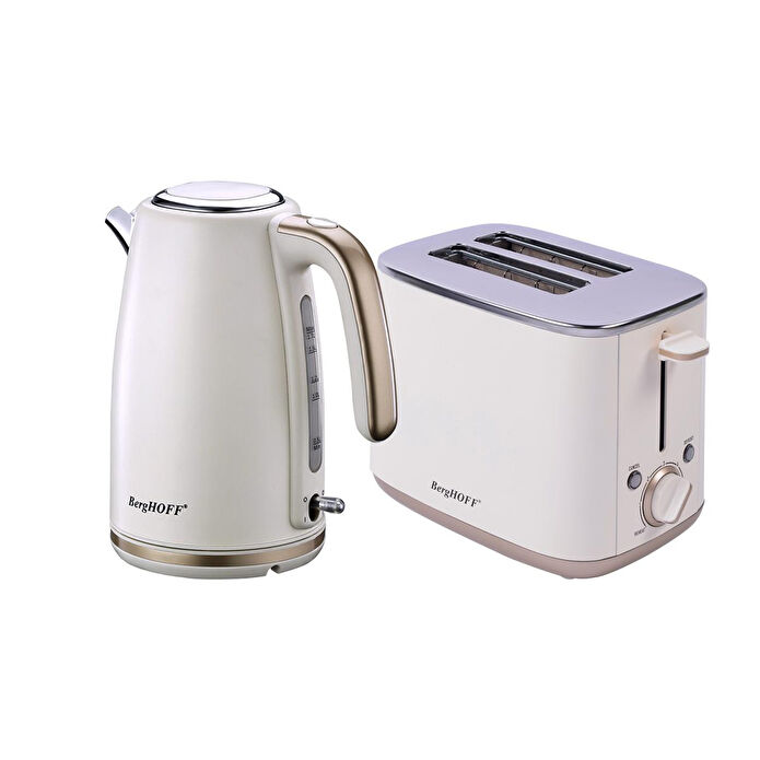 Berghoff Gem Pearl 1.7 Li̇tre Vani̇lya Krem Rengi̇ Gold Modern Su Isitici + Berghoff Gem Pearl Vani̇lya Krem Rengi̇ İki̇ Di̇li̇m Ekmek Kizartma Maki̇nesi̇ Set