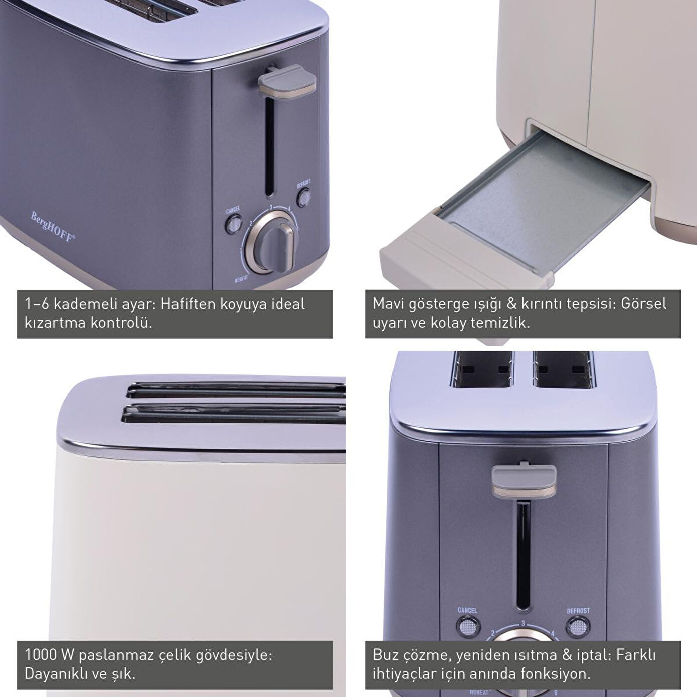 Berghoff Gem Pearl 2 Dilim Ekmek Kızartma Makinesi – 1000 W, Paslanmaz Çelik | Gri