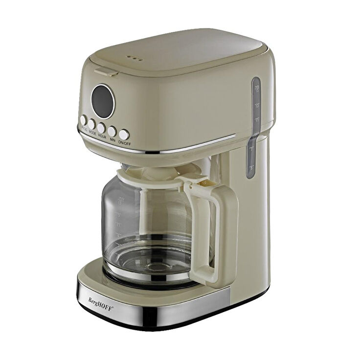 Berghoff Gem Retro Filtre Kahve Makinesi – 900 W, 1,5 L Cam Demlik | Vanilya Krem
