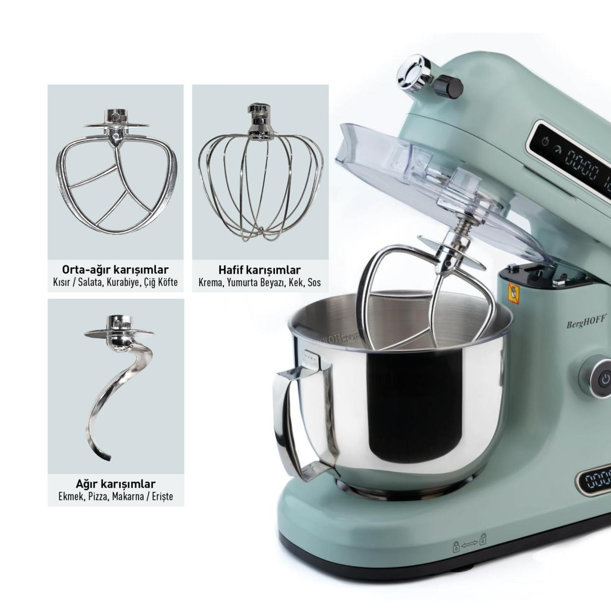 Berghoff Gem Retro 5 L Stand Mikser – 1600 W, Dayanıklı Döküm Alüminyum Gövde | Mint Yeşil