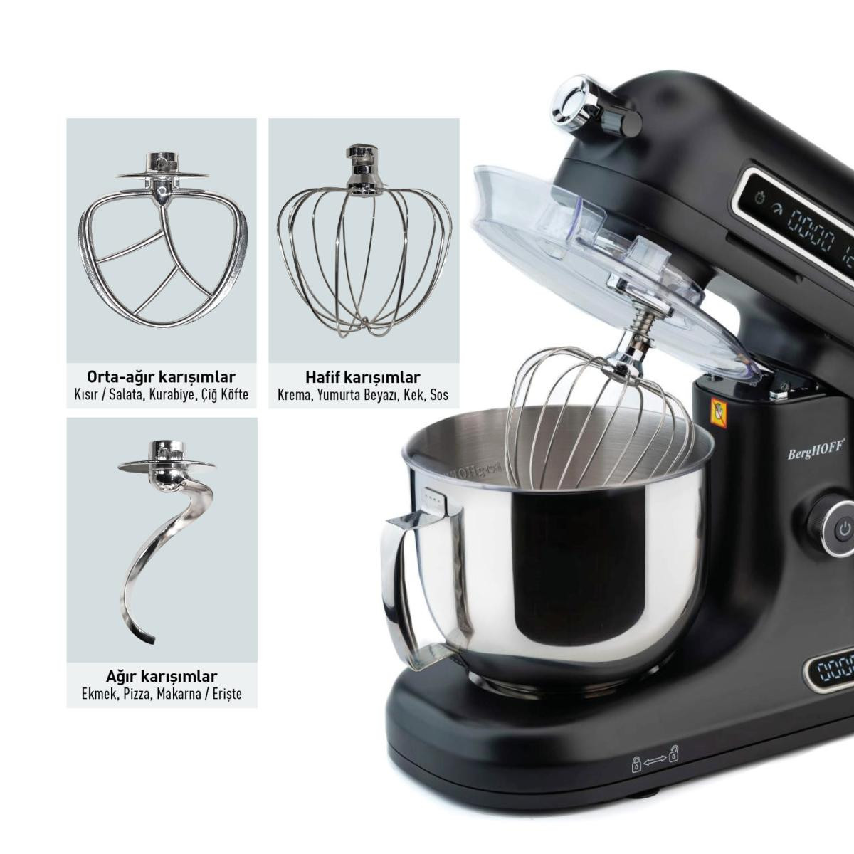 Berghoff Gem Retro 5 L Stand Mikser – 1600 W, Dayanıklı Döküm Alüminyum Gövde | Siyah