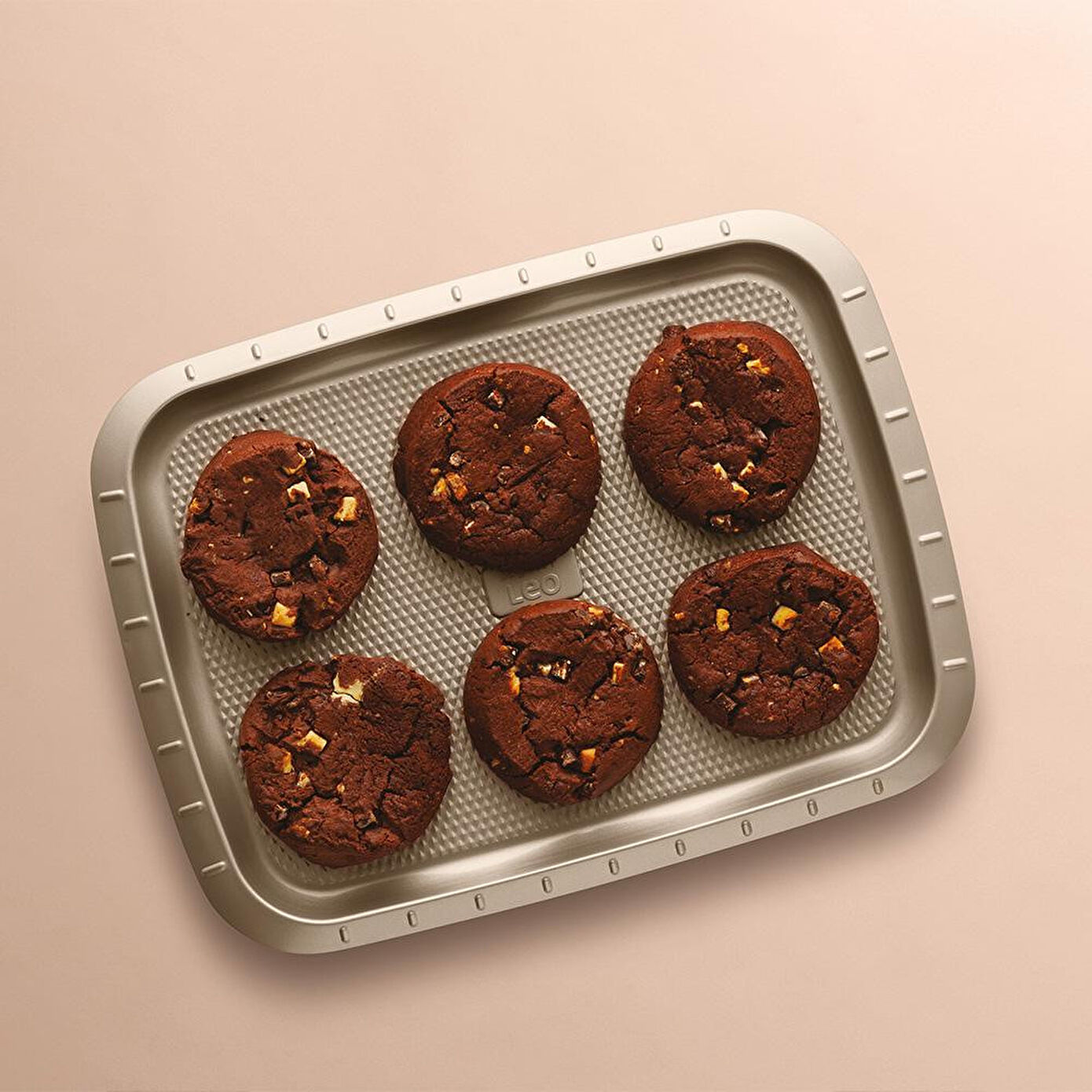 Ürün Açıklaması: Leo Balance Karbon Çeliği Fırın Tepsisi, tatlılardan hamur işlerine kadar her türlü pişirme için mükemmel bir seçenektir. Elmas dokulu karbon çelik malzeme, eşit ısı dağılımı sağlar ve yapışmaz kaplama sayesinde yiyeceklerin fırın tepsisinden kolayca çıkmasını sağlar. Bu da tabakta kalmış yanmış yemek artıkları ve temizlik sorunlarını ortadan kaldırır. Ayrıca, ızgara çizgileri sayesinde porsiyonları eşit şekilde kesmek kolaylaşır. Öne Çıkan Özellikler: • Eşit pişirme için hava akışını artıran elmas dokulu taban • Eşit porsiyonlar için ızgara çizgileri • Yapışmaz fernogreen kaplama, yiyeceklerin kolayca çıkmasını sağlar • Hafif karbon çelik malzeme • Kolay temizlenebilir, elde yıkanabilir Teknik Özellikler: • Boyutlar: 34x25,50x2 cm • Ağırlık: 0,59 kg • Malzeme: Karbon çeliği • Yapışmaz: Evet • Fırına dayanıklı: 230°C • Üretici Garantisi: 2 yıl