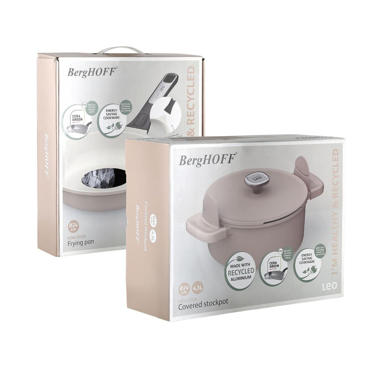 Berghoff Leo Phantom Kapakli Yapişmaz Tencere 24 Cm + Kizartma Tavasi 24 Cm Latte