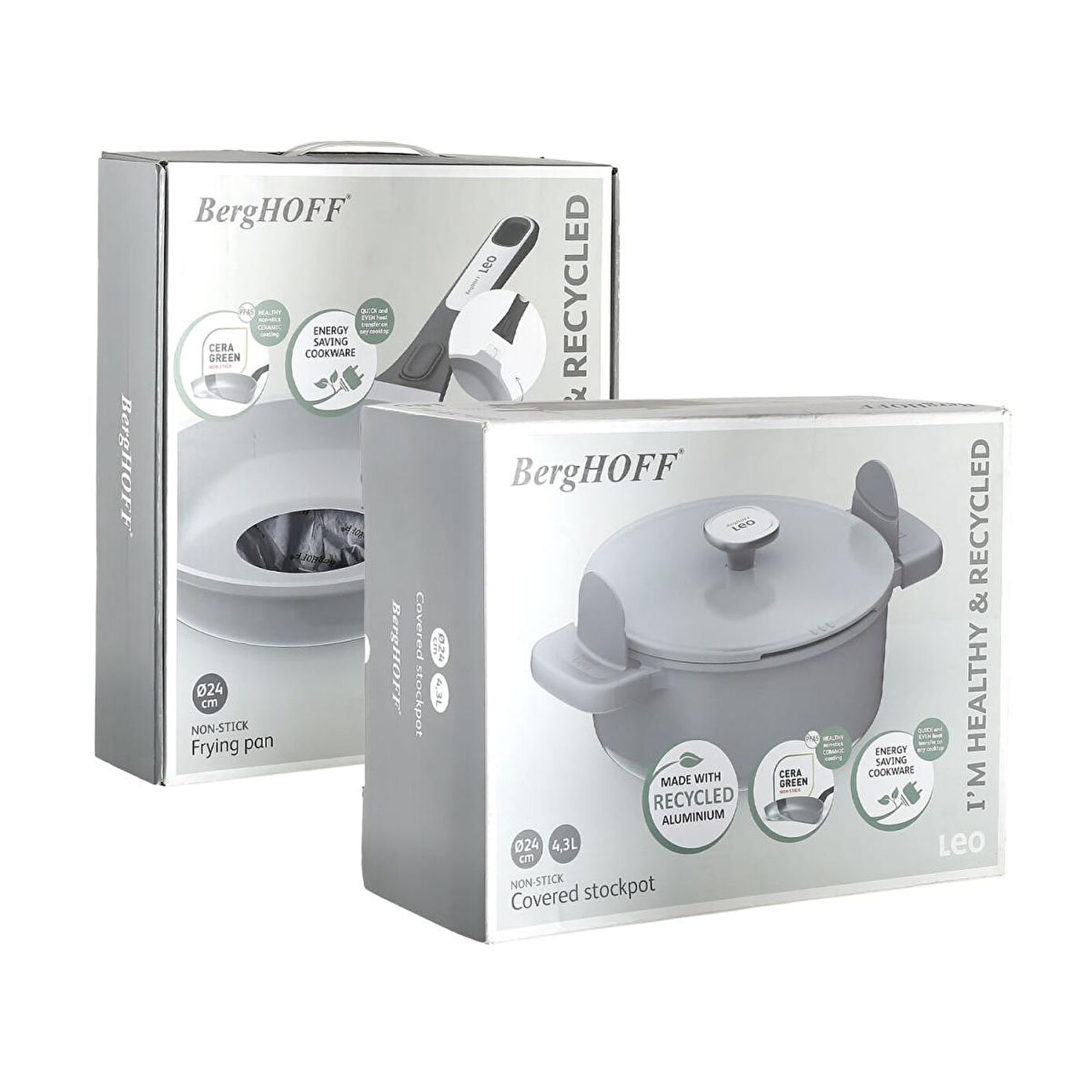 Berghoff Leo Phantom Kapakli Yapişmaz Tencere 24 Cm + Kizartma Tavasi 24 Cm Smoked Grey