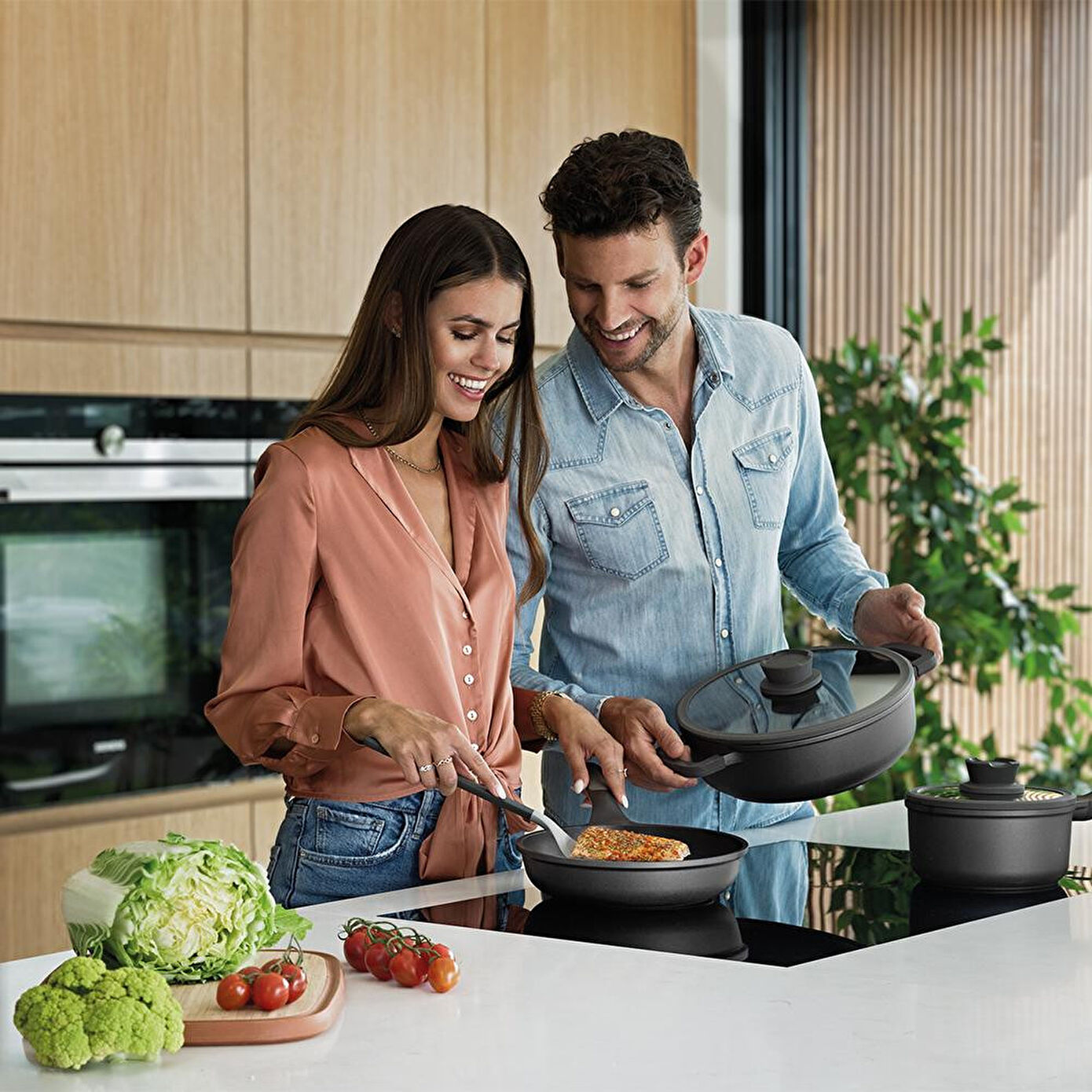 İster sabahları biraz pastırma ister akşamları bir parça balık kızartmak için olsun, bu yapışmaz tava mutfakta olmazsa olmazdır. Sağlıklı seramik CeraGreen yapışmaz kaplaması sayesinde minimum miktarda yağ ile kızartma yapabilir ve tavayı bir dakikadan kısa sürede temizleyebilirsiniz. Isıyı hızlı ve eşit bir şekilde dağıtan yüksek kaliteli geri dönüştürülmüş alüminyum döküm sayesinde bu kızartma tavası yıllarca dayanacak gerçek bir koruyucudur. Bu tava yiyecekleri kızartmak, sotelemek ve kahverengileştirmek için idealdir ve sapındaki silikon parça rahat ve yumuşak bir tutuşu garanti eder. Üstelik, indüksiyon ve aşağı akışlı egzoz sistemleri de dahil olmak üzere tüm ocaklar için uygundur. Benzersiz özellikler: 180°C / 356°F'ye kadar fırına dayanıklı İndüksiyon ve downdraft egzoz sistemleri dahil tüm ocaklar için uygundur Enerji tasarruflu pişirme için ısıyı hızlı ve eşit şekilde ileten tam disk taban Geri dönüştürülmüş alüminyumdan üretilmiştir Kolay yiyecek bırakma Kolay temizlenir Kullanımı kolay hafif malzemeİçerik bileşimi: Gövde Malzemesi: Geri dönüştürülmüş alüminyum döküm Kulp Malzemesi: Fenolik reçine Bakım ve Kullanım: Elde yıkanması önerilir