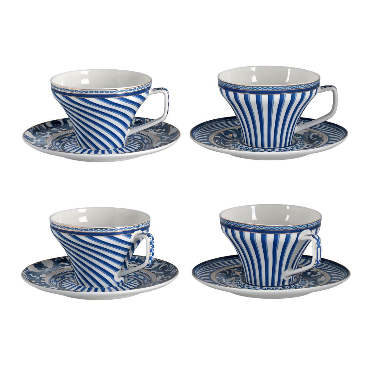 Berghoff Lunetta 4'lü Çay Fincanı Seti, mavi ve beyazın dinamik burgu desenleriyle çay saatlerinize modern ve hipnotik bir hava katıyor. Göz yormayan bu optik tasarım, Bone porselenin ince ve zarif yapısıyla birleşerek dört kişilik ikramlarınız için ideal ve şık bir seçenek sunar.