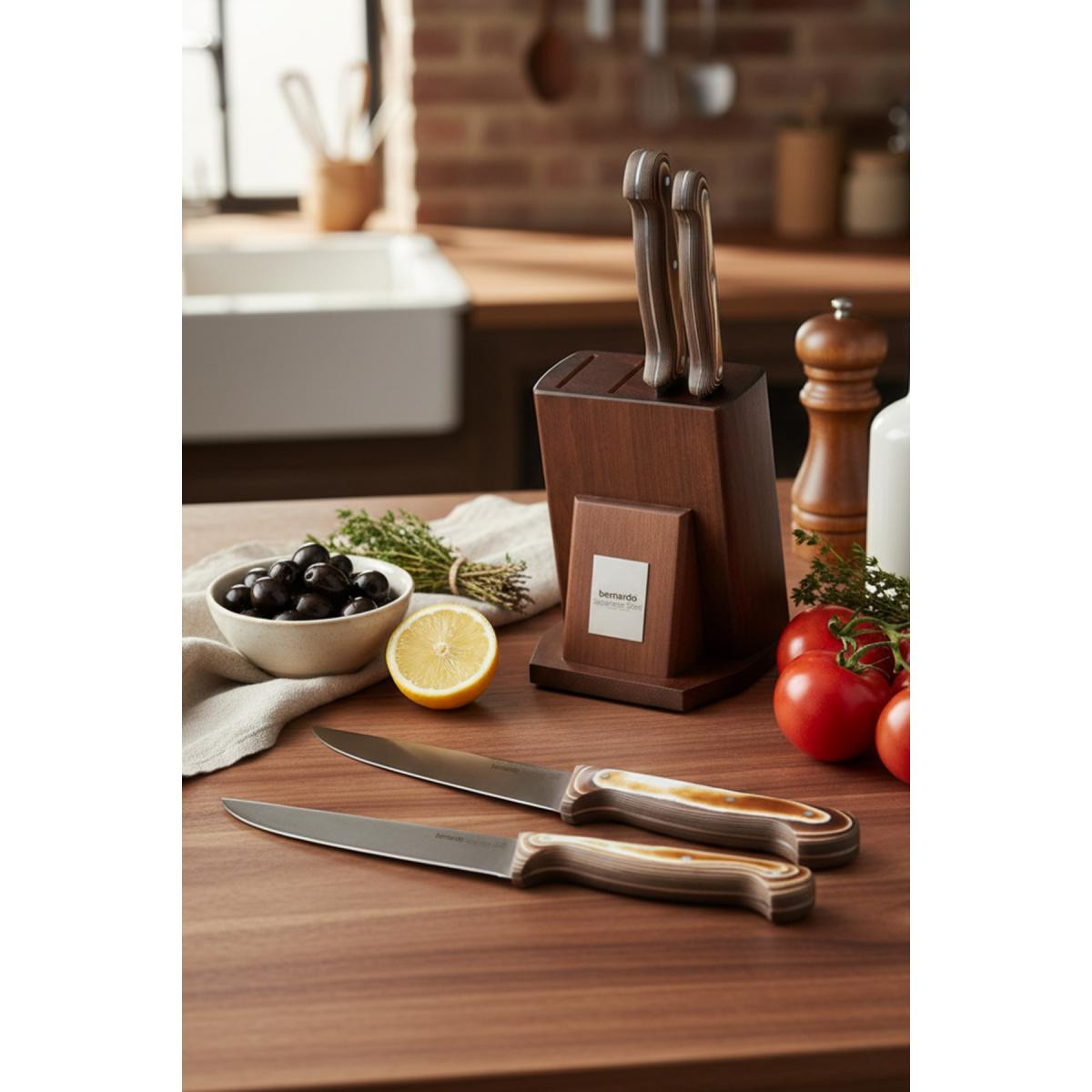 Bernardo Arcos Takozlu Bıçak Seti, mutfakta ihtiyaç duyacağınız tüm bıçakları bir arada sunan, yüksek kaliteli ve şık bir settir. Hem profesyonel aşçılar hem de ev kullanıcıları için idealdir. Bernardo ve Arcos'un işbirliği ile üretilen bu set, mutfaklarınıza değer katacak.