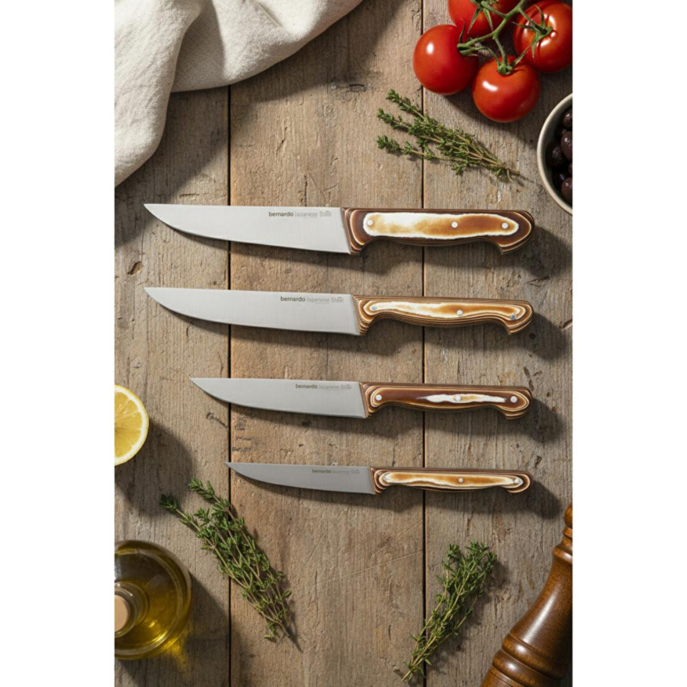 Bernardo Arcos bıçak seti, mutfaktaki çeşitli kesme, doğrama, soyma ve dilimleme işlemlerini kolaylaştırmak için tasarlanmıştır. Her bıçak, belirli bir amaç için optimize edilmiştir.