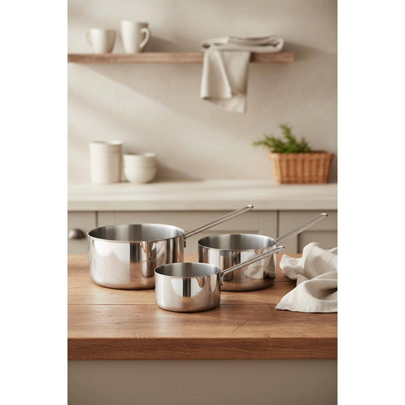 Ürün Özellikleri Parça Sayısı: 3 Malzeme: Paslanmaz çelik Renk: Inox Boyutları: 16 cm / 14 cm / 12 cmFonksiyonları ve Kullanım Alanları Sütlük: Kahvaltılarda veya çay saatlerinde süt servis etmek için idealdir. Servislikler: Reçel, bal, zeytin gibi kahvaltılıkları veya atıştırmalıkları servis etmek için kullanılabilir. Kullanım Alanları: Ev, ofis, kafe, restoran gibi yerlerde kullanılabilir. Ürünün Avantajları Kaliteli Malzeme: Çelik malzeme sayesinde uzun ömürlü ve dayanıklıdır. Çok Amaçlı Kullanım: Sadece sütlük olarak değil, farklı amaçlar için de kullanılabilir. Kolay Temizlik: Çelik yapısı sayesinde kolayca temizlenebilir. Çeyizlik: Çeyiz hazırlığı yapanlar için ideal bir seçenektir. Uygun Fiyatlı: Kaliteli bir ürün olmasına rağmen uygun fiyatlıdır. Kullanım Amacı