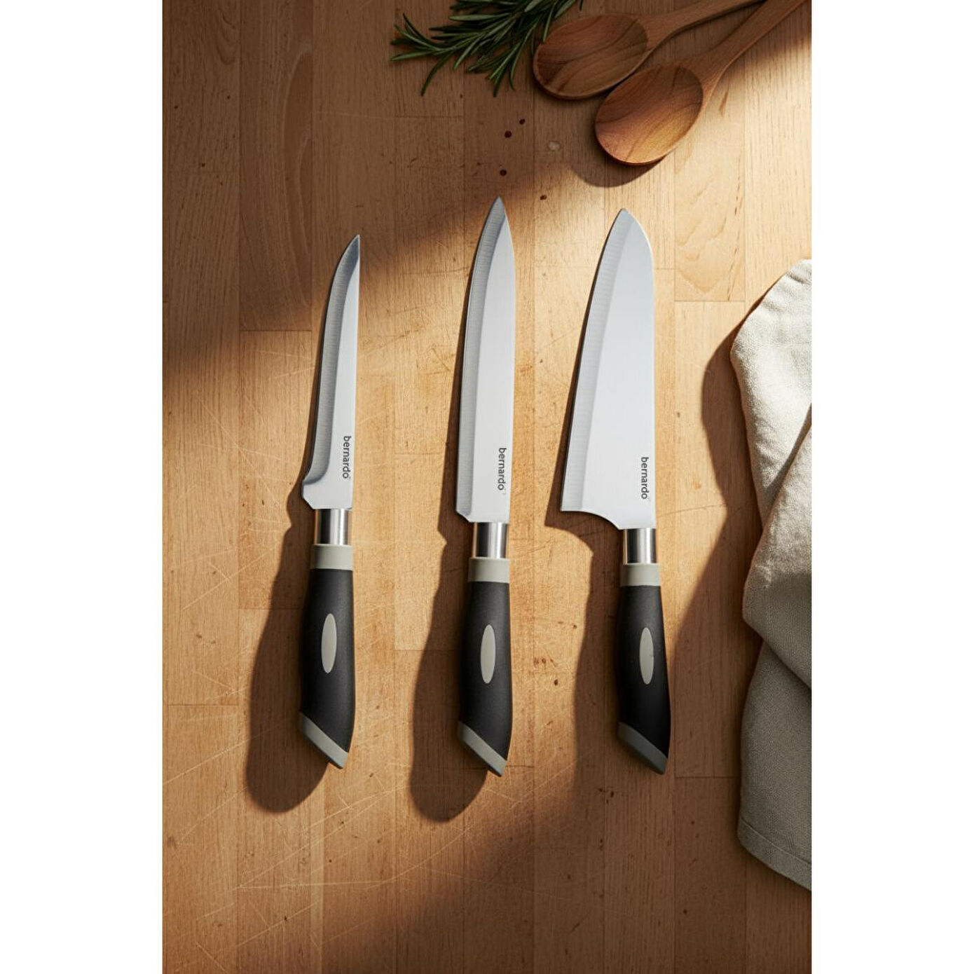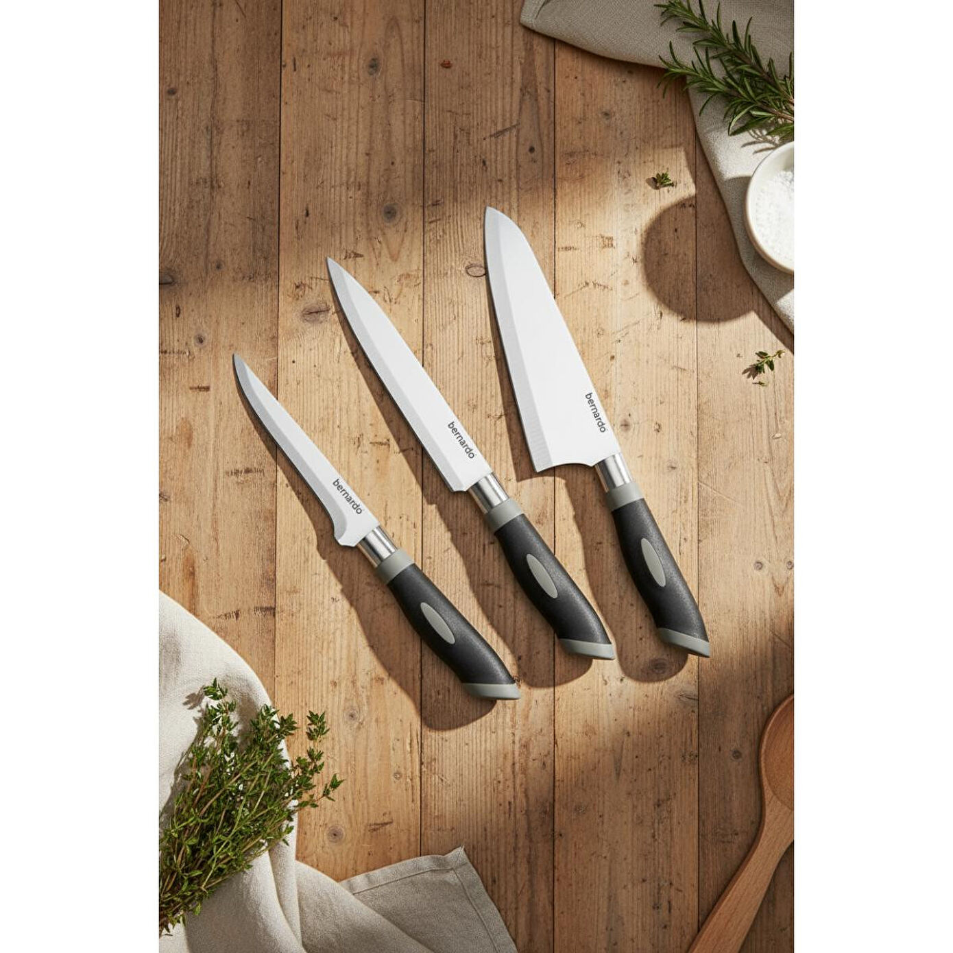 Bernardo Blade Bıçak Seti: Bernardo'nun kalitesiyle üretilmiş, mutfakta farklı ihtiyaçlara cevap veren çeşitli bıçaklardan oluşan settir. Fileto bıçakları, sebze bıçakları, ekmek bıçakları gibi farklı çeşitleri bulunabilir.