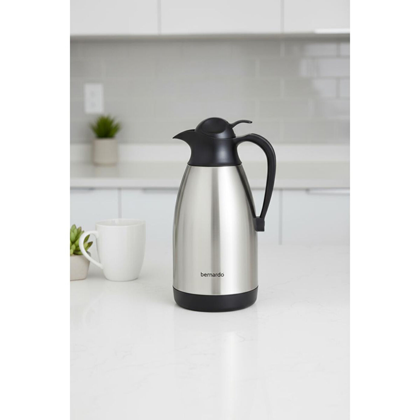 Kullanımı Termosu ilk kullanımdan önce sıcak suyla yıkayın. İçeceğinizi termosa doldurun. Kapağını sıkıca kapatın. Dökme mekanizmasını kullanarak içeceğinizi kolayca servis yapın. Temizlik için termosu ılık su ve deterjanla yıkayın.İçeceklerinizi gün boyu istediğiniz sıcaklıkta tutan, şık ve dayanıklı Bernardo Grandio Termos ile tanışın! Paslanmaz çelikten üretilmiş bu termos, hem sıcak hem de soğuk içecekleriniz için ideal bir çözümdür.