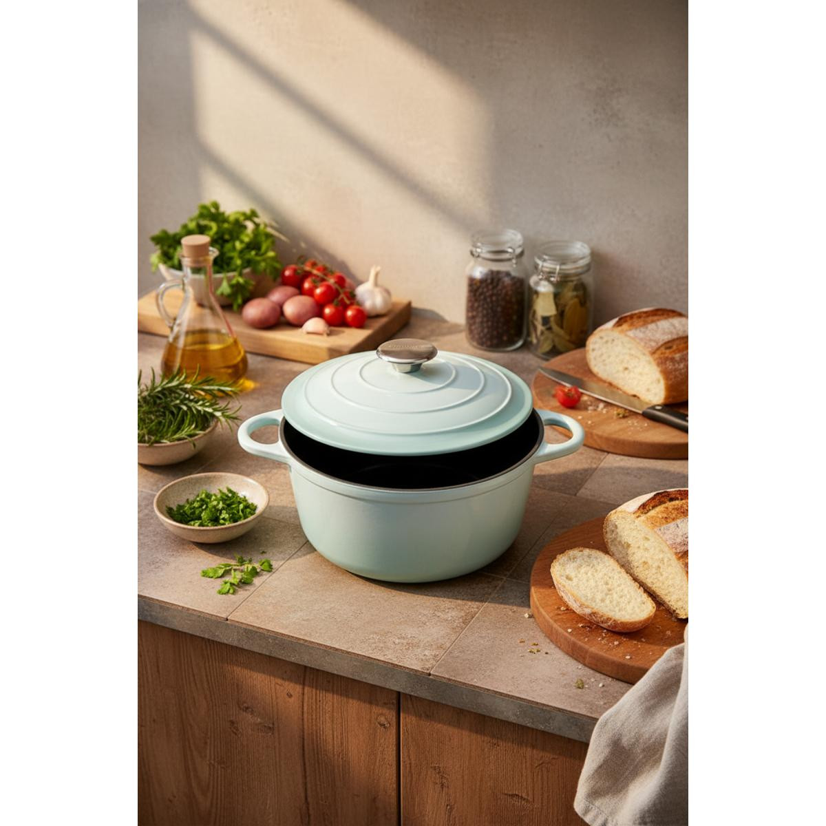Ürün Detayları ve Açıklayıcı AçıklamalarBernardo Intensa serisi, döküm tencerelerin sunduğu üstün pişirme performansını, modern bir tasarımla birleştiriyor. Bu 24 cm çapındaki yeşil renkli döküm tencere, hem görsel olarak mutfağınıza şıklık katacak, hem de yemeklerinizi en iyi şekilde pişirmenizi sağlayacak.