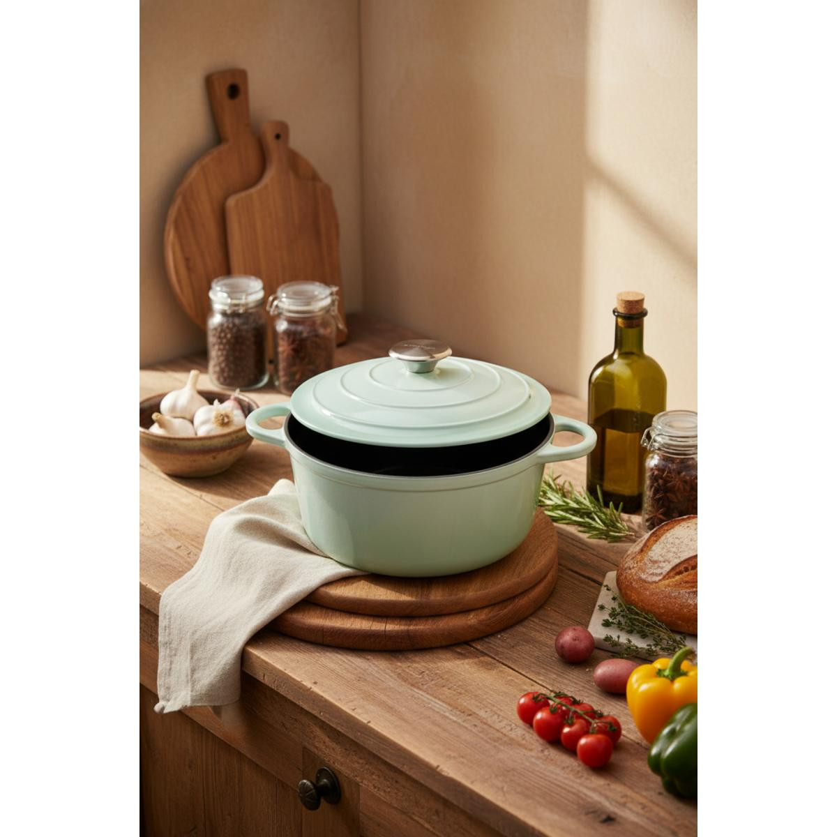 Ürünün Dış GörünümüParlak yeşil rengi ve şık tasarımıyla mutfağınıza modern bir hava katar. Ergonomik kulpları sayesinde kolayca taşınabilir.