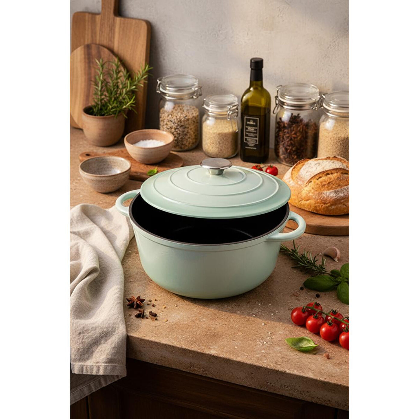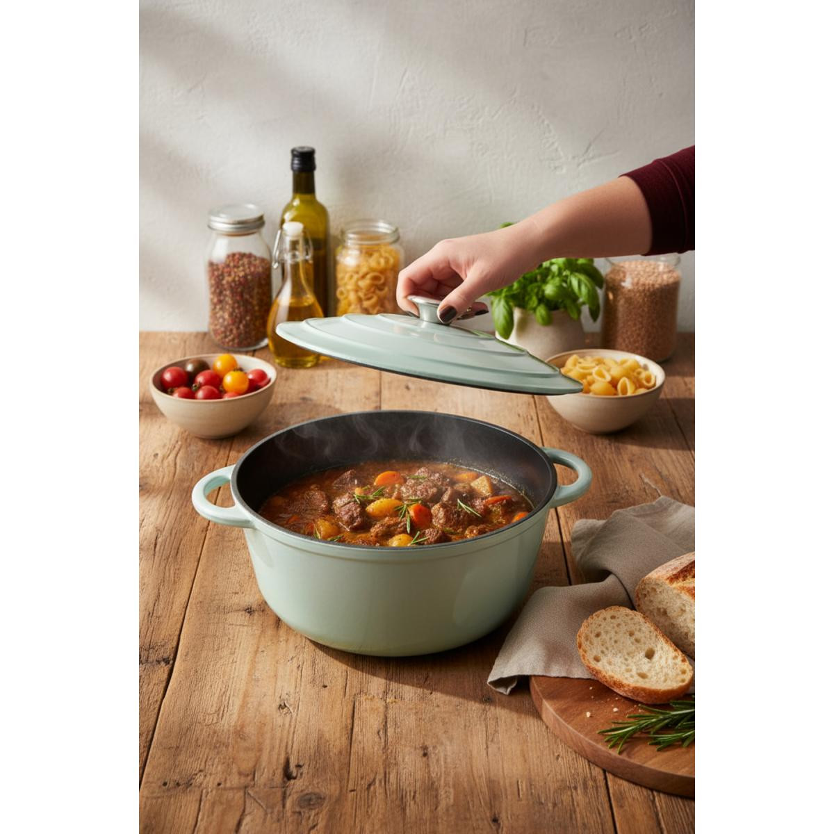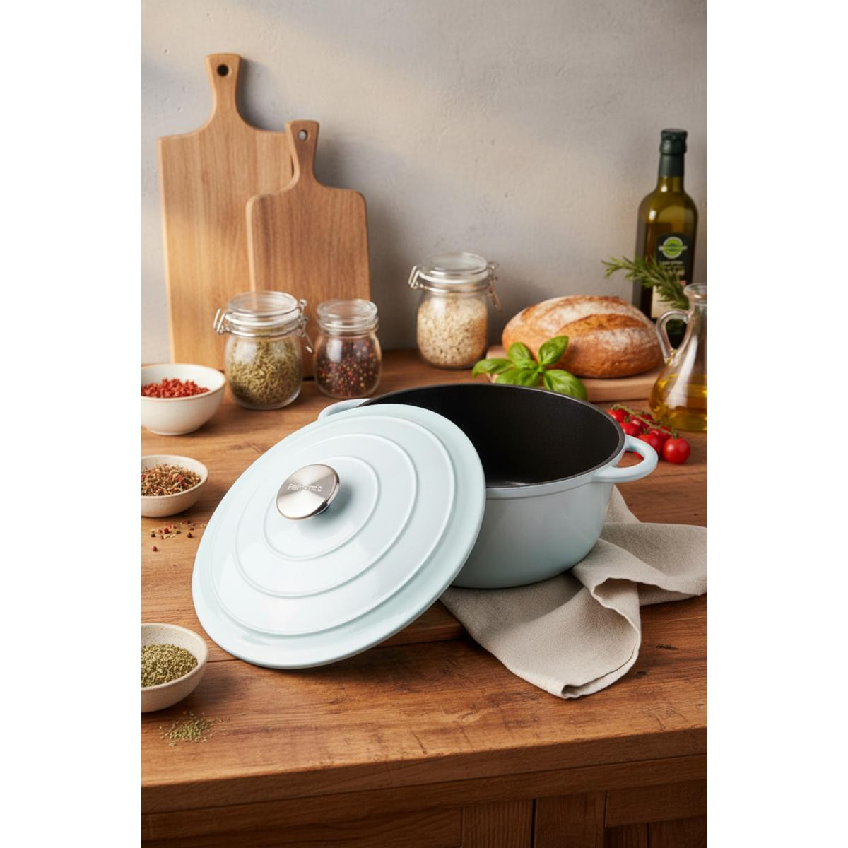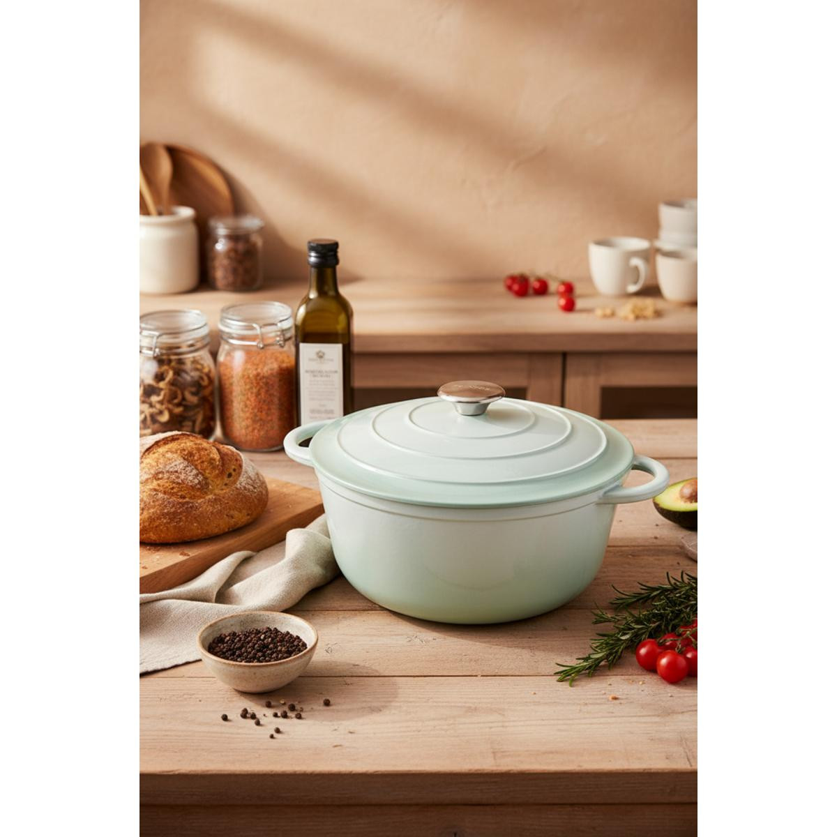 Bernardo Intensa serisi döküm tencereler, mutfakta uzun ömürlü kullanım ve üstün pişirme performansı sunar. 28 cm çapındaki bu yeşil döküm tencere, hem estetik görünümü hem de fonksiyonel özellikleriyle yemek yapmayı keyifli hale getirir.