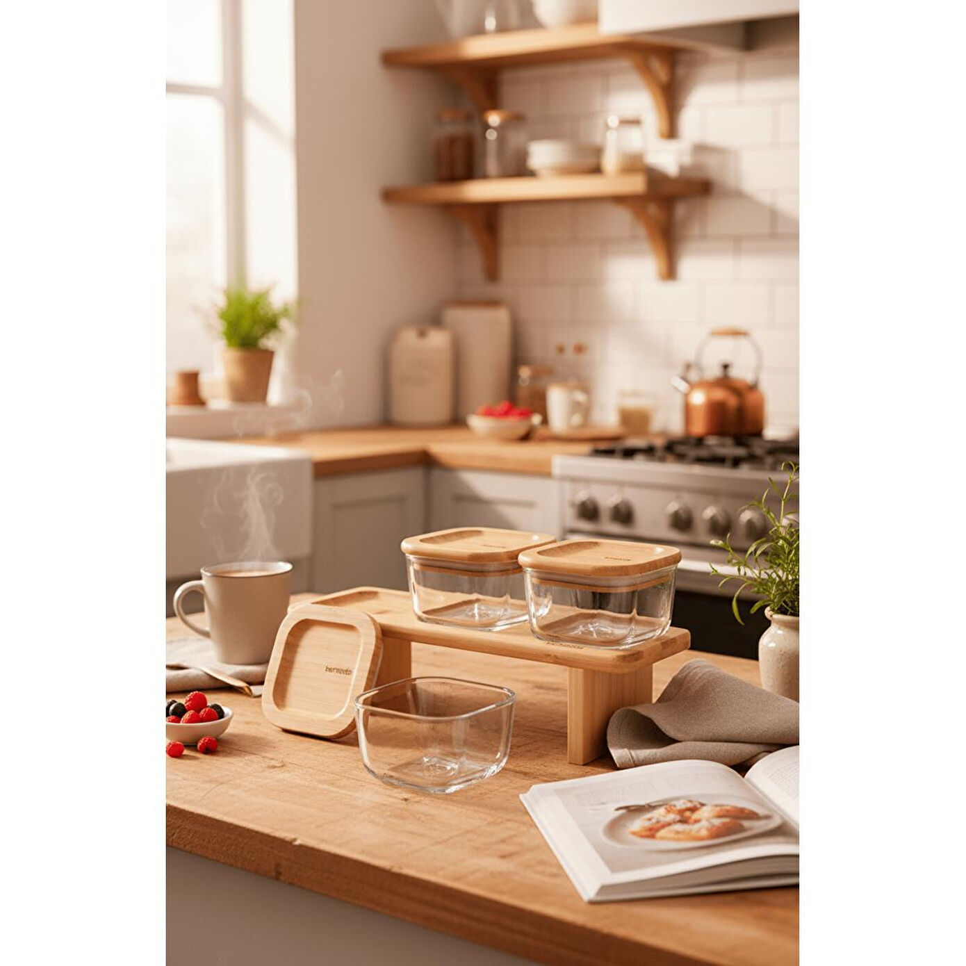 Bernardo Lunaya 3'lü Bambu Standlı Kahvaltılık Büyük Boy