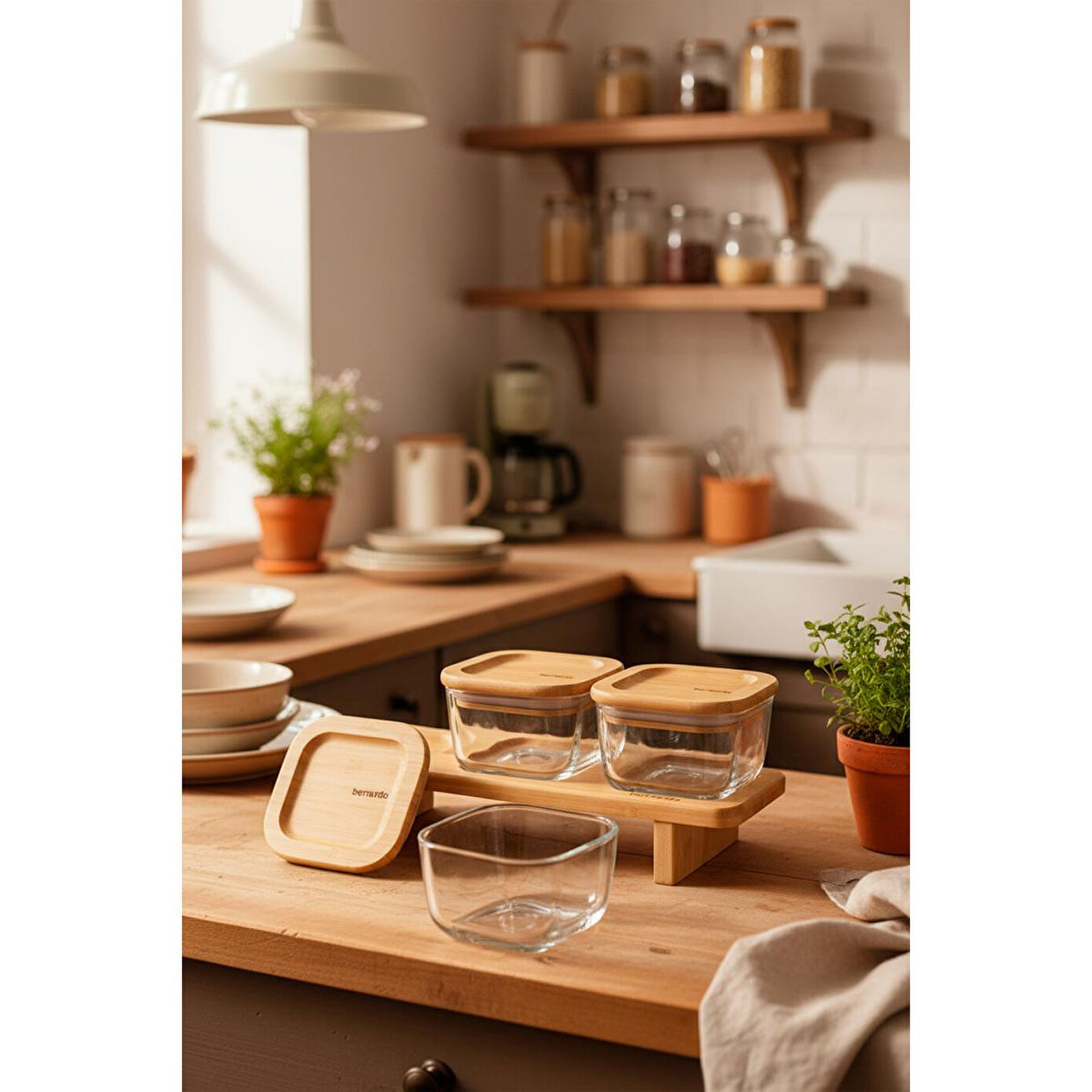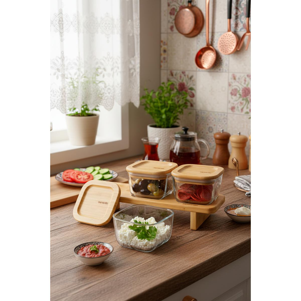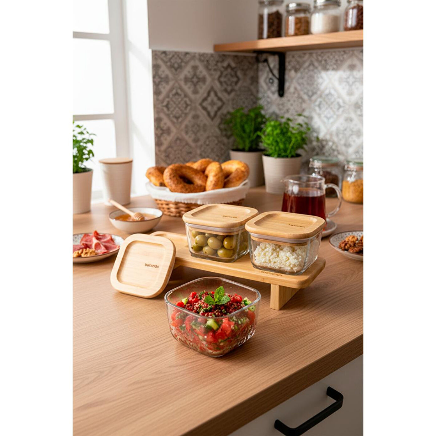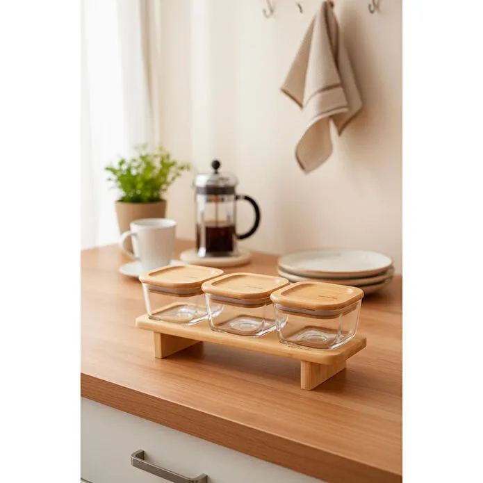 Bernardo Lunaya 3'lü Bambu Standlı Kahvaltılık Orta Boy
