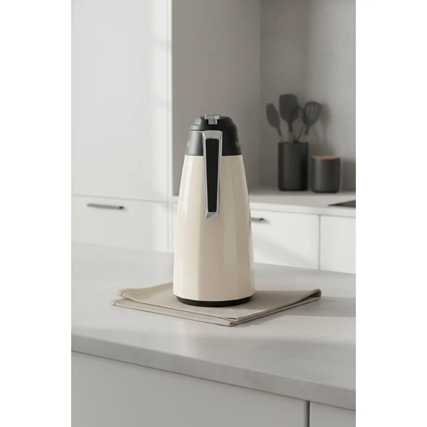 Ürün Özellikleri Marka: Bernardo Model: Lustra Renk: Krem Kapasite: 1.5 Litre Malzeme: Çelik (İç ve Dış Gövde) Sıcak Tutma Süresi: Ortalama 12-24 saat (Ortam sıcaklığına bağlı olarak değişiklik gösterebilir.) Soğuk Tutma Süresi: Ortalama 24-36 saat (Ortam sıcaklığına bağlı olarak değişiklik gösterebilir.) Dış Görünüm: Şık ve zarif krem rengi, paslanmaz çelik detaylar. Ürün Fonksiyonları ve Avantajları İçecekleri uzun süre sıcak veya soğuk tutar. Dayanıklı çelik malzemeden üretilmiştir, uzun ömürlüdür. 1.5 litrelik kapasitesi ile ideal kullanım sunar. Krem rengi ile şık bir görünüme sahiptir. Kolay temizlenir. Seyahatlerde, kamplarda, pikniklerde ve ofiste kullanım için idealdir. Geniş ağzı sayesinde kolay doldurulur ve boşaltılır. Ürün Kullanım Alanları Ev Ofis Kamp Piknik Seyahat Ürün Kullanım Amacıİçecekleri (kahve, çay, su vb.) uzun süre istenilen sıcaklıkta muhafaza etmek.