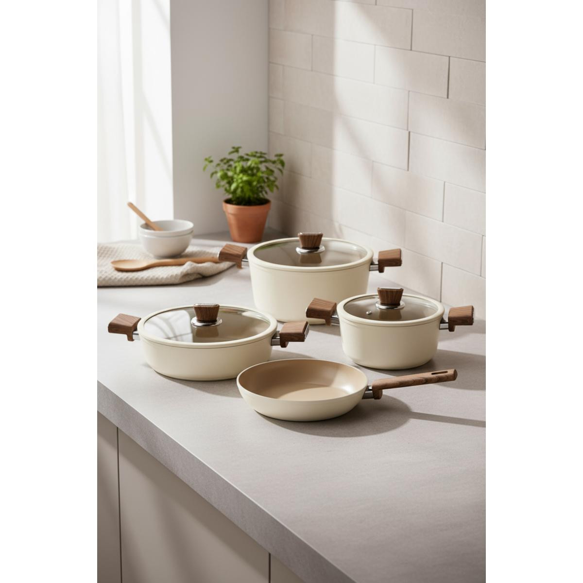 Ürünün Kullanımı İlk kullanımdan önce sıcak su ve deterjanla yıkayınız. Yemek pişirirken tahta veya silikon spatula kullanınız. Yüksek ateşte uzun süre kullanmaktan kaçınınız. Bulaşık makinesinde yıkanabilir, ancak elde yıkama ömrünü uzatır. Ürün TanıtımıMutfakta lezzetli yemekler pişirirken şıklığı da ön planda tutan Bernardo Mayasa 7 Parça Seramik Tencere Seti, fil dişi rengiyle göz dolduruyor. Bu set, hem kullanışlılığı hem de estetiği bir arada sunarak mutfak deneyiminizi zenginleştirecek. En iyi seramik tencere seti arayışında olanlar için ideal bir seçenek!