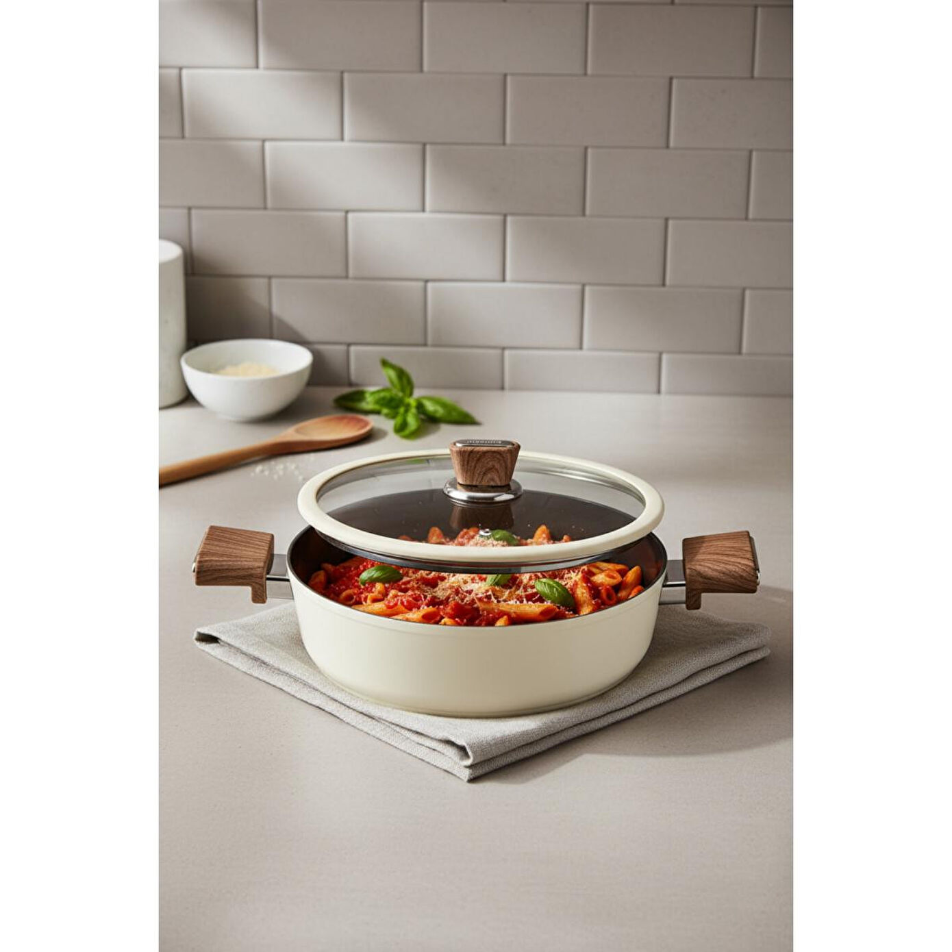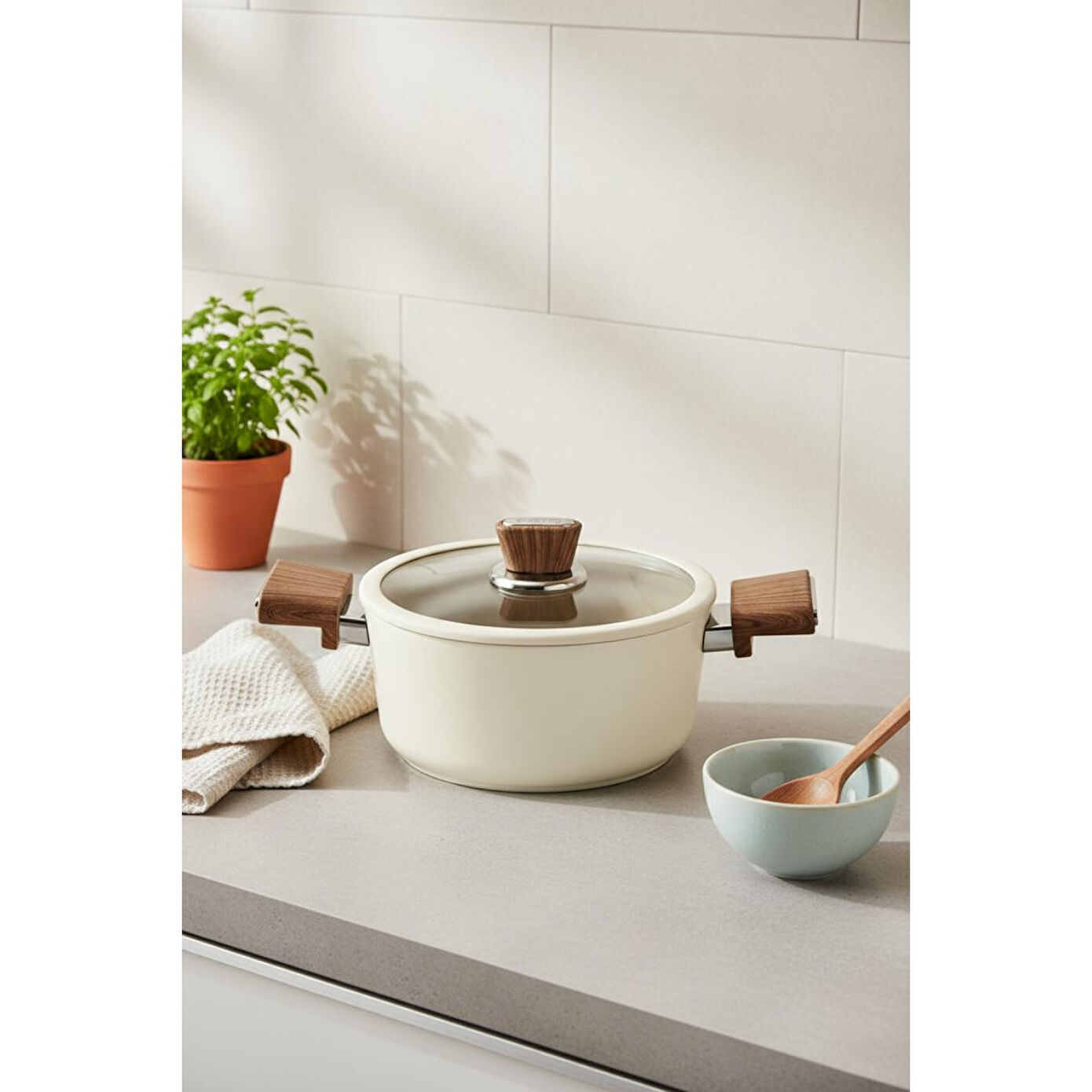 Ürünün Dış GörünümüFil dişi rengi ve şık tasarımıyla mutfağınıza zarafet katar. Ergonomik sapları sayesinde kolayca tutulur ve taşınır.