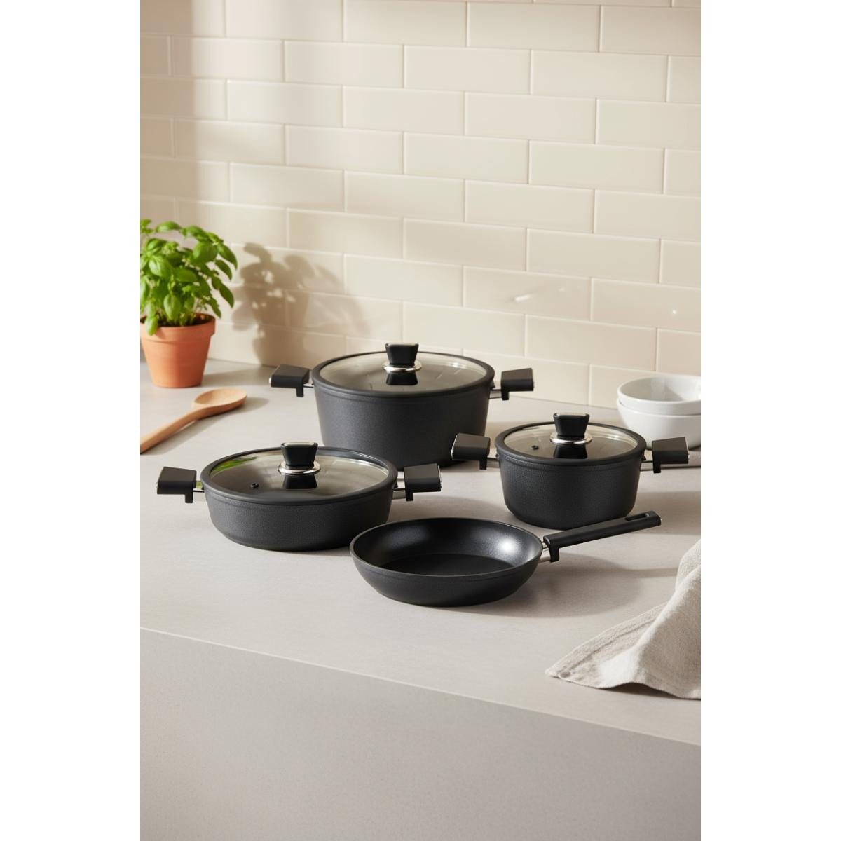 1 adet Derin Tencere (20 cm) 1 adet Derin Tencere (24 cm) 1 adet Sığ Tencere (26 cm) 1 adet Tava (26 cm) 3 adet Tencere Kapağı (cam)Ürünün Kullanım Amacı