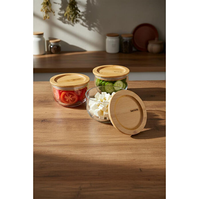Bernardo Mira Bambu Kapaklı 3'lü Cam Saklama Kabı, mutfaklarınızda hem şıklığı hem de kullanışlılığı bir araya getiren ideal bir çözümdür. Camın şeffaflığı, bambunun doğal sıcaklığı ile birleşerek mutfaklarınıza estetik bir dokunuş katar. 300 ML kapasitesiyle erzaklarınızı, baharatlarınızı ve diğer mutfak malzemelerinizi düzenli bir şekilde saklamanıza yardımcı olur.
