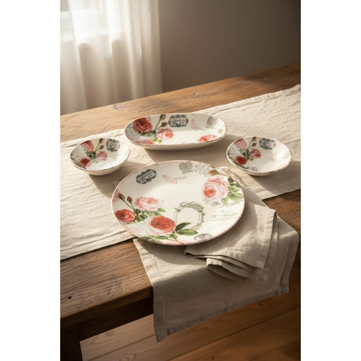 20 cm pasta tabağı:6 adet//10 cm çay tabağı:6 adet//10 cm kase :4 adet//19 cm kayık tabak:2 adet