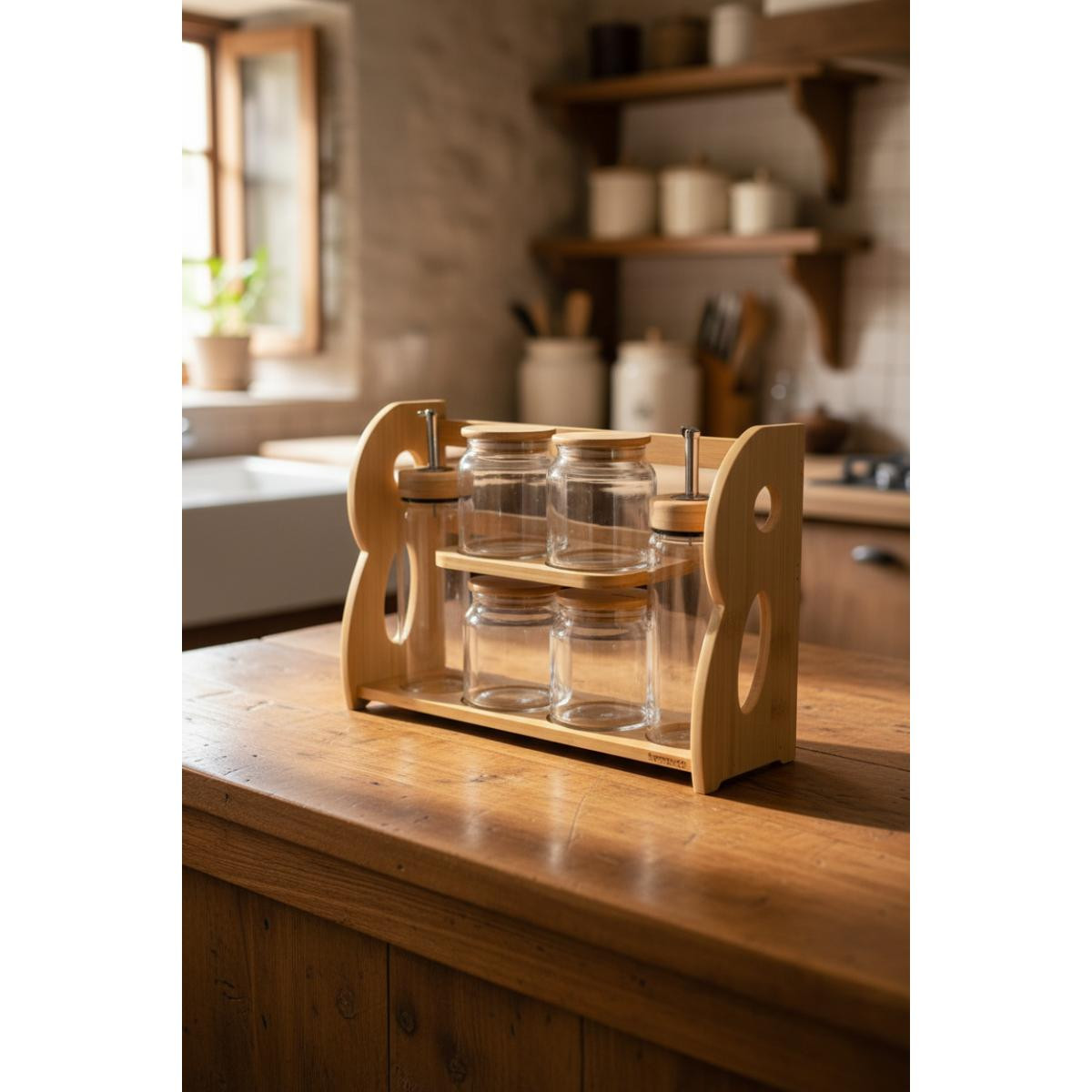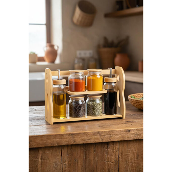 Ürün Özellikleri İçerik: 6 parça bambu mutfak gereci Malzeme: %100 doğal bambu Dış Görünümü: Doğal bambu rengi, şık ve minimalist tasarım Kalite: Yüksek kaliteli, dayanıklı ve uzun ömürlü Sağlığa Faydaları: Bambu, doğal bir malzeme olduğu için antibakteriyel özelliklere sahiptir ve sağlığa zararlı kimyasallar içermez.Ürün İçeriğiRaflı stand: en: 10,5 cm boy: 34 cm yükseklik: 22,5 cmKavanozların her biri: 250 ml (4 adet)Soslukların her biri: 300 ml (2 adet) Ürün FonksiyonlarıBernardo Norelle bambu mutfak seti, çeşitli pişirme ve servis işlemlerinde kullanabileceğiniz farklı fonksiyonlara sahip araçlar içerir. Karıştırma, servis yapma, yemek pişirme gibi birçok ihtiyacınızı karşılar.