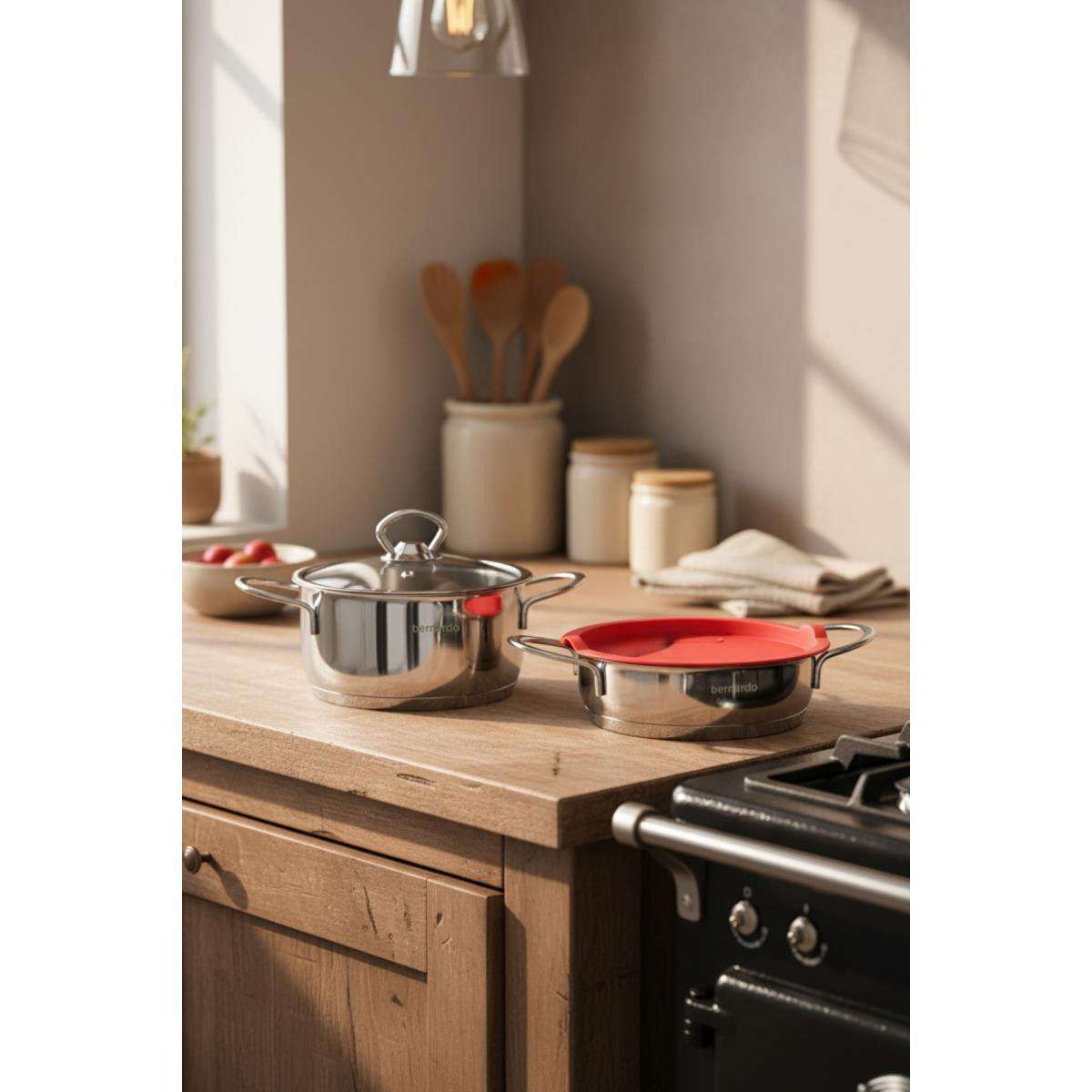 Bernardo Pera 4 Parça Pişir Sakla Tencere Seti, mutfakta pratiklik ve şıklığı bir araya getiren, yüksek kaliteli çelikten üretilmiş bir tencere setidir. İndüksiyon dahil tüm ocak tiplerinde kullanıma uygun tabanı ve pişirme sonrası yiyecekleri saklama kolaylığı sağlayan kapaklarıyla öne çıkar. Hem günlük kullanıma hem de çeyizlik olarak ideal bir seçenektir.