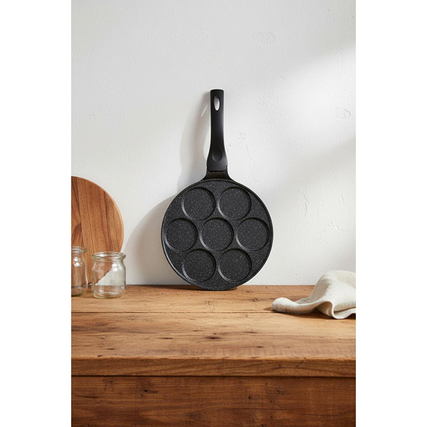 Ürünün Kullanımı Tavayı hafifçe yağlayın. Ocağın üzerine yerleştirin ve orta ateşte ısıtın. Pankek harcını bölmelere dökün. Altı kızardığında dikkatlice çevirin. Her iki tarafı da piştikten sonra servis yapın.| Renk | Siyah |