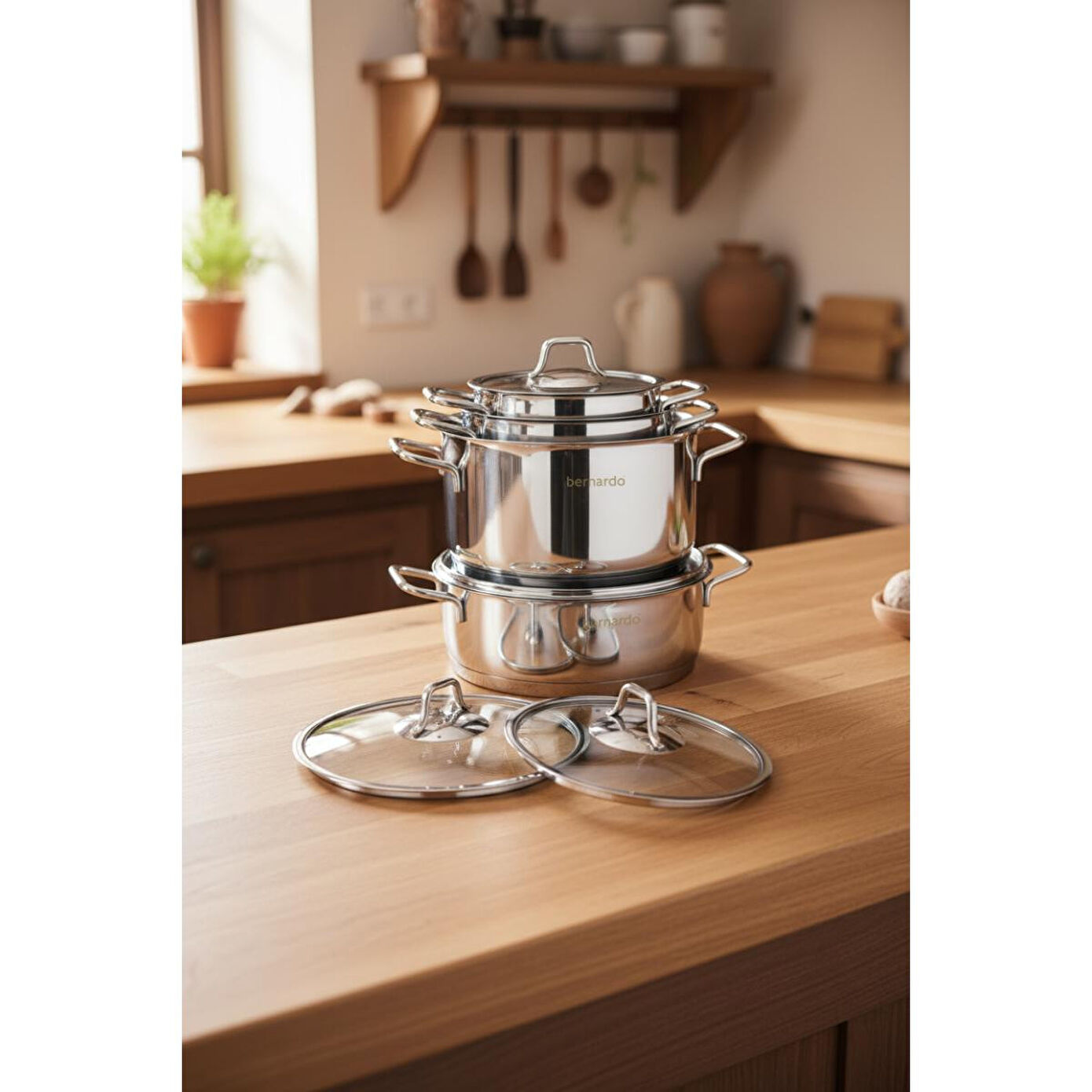 Bernardo Sonora 8 Parça Çelik Tencere Seti, mutfakta yemek yapmayı keyifli hale getiren, şık tasarımı ve üstün özellikleriyle öne çıkan bir üründür. Hem günlük kullanıma hem de özel davet sofralarına uygun olan bu set, indüksiyon dahil tüm ocak tiplerinde kullanıma uygundur. Uygun fiyatlı ve kaliteli bir tencere seti arayanlar için ideal bir seçenektir.