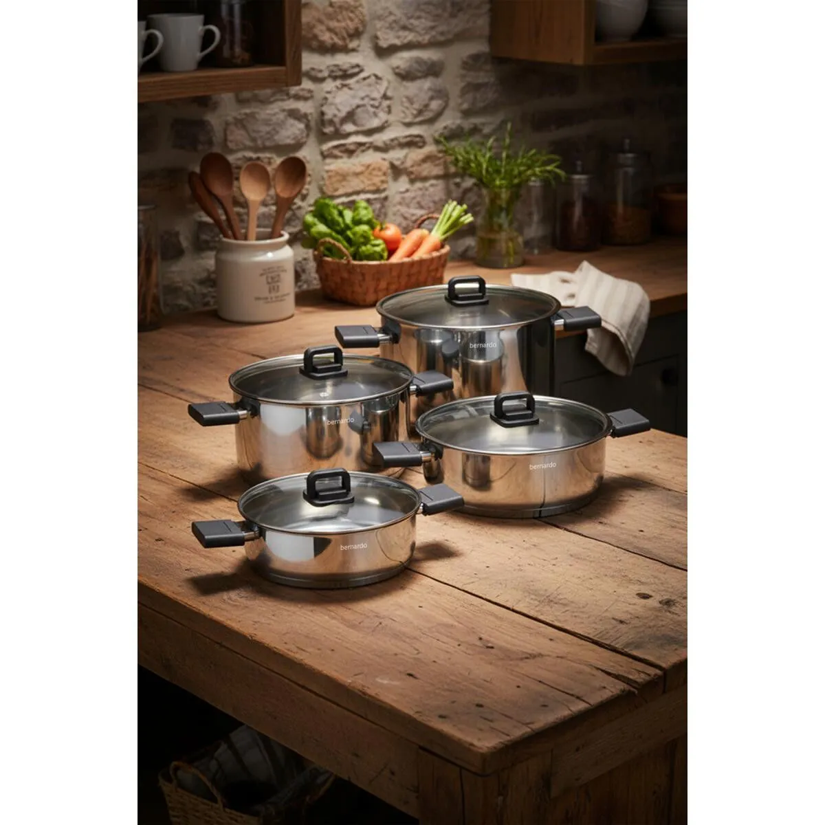 Anahtar KelimelerBernardo Stella tencere seti, Bernardo çelik tencere, çelik tencere seti, 8 parça tencere seti, uygun fiyatlı tencere seti, kaliteli tencere seti, indirimli tencere seti, Bernardo tencere fiyatları, çeyizlik tencere seti, en iyi tencere seti, paslanmaz çelik tencere, dayanıklı tencere seti.