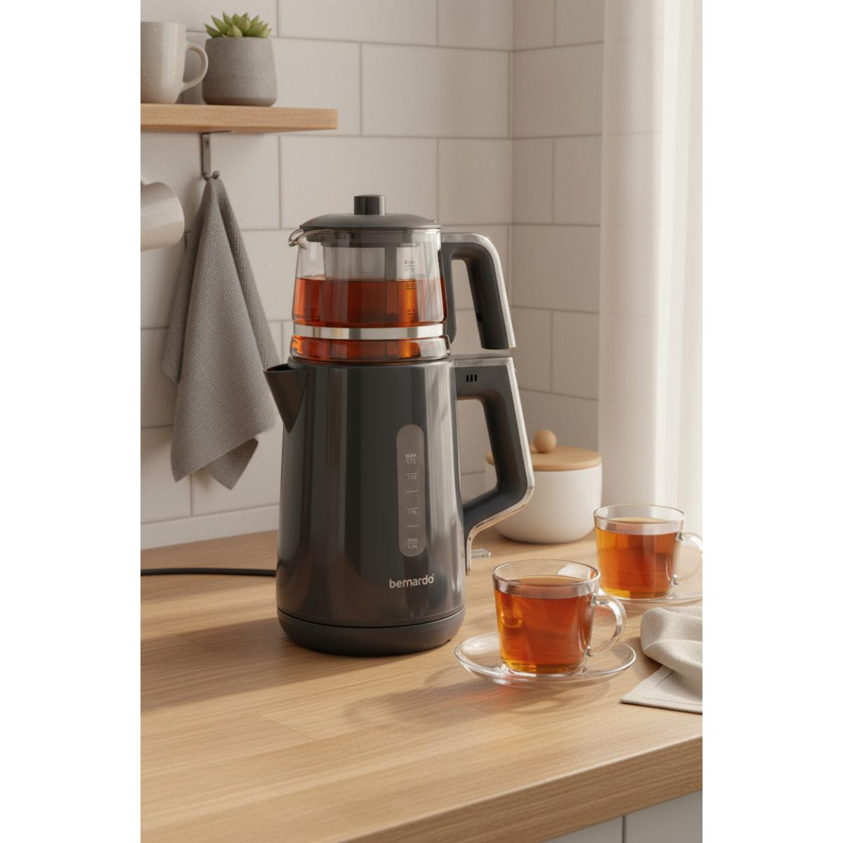 Bernardo Venedik Cam Demlikli Çay Makinesi Gri