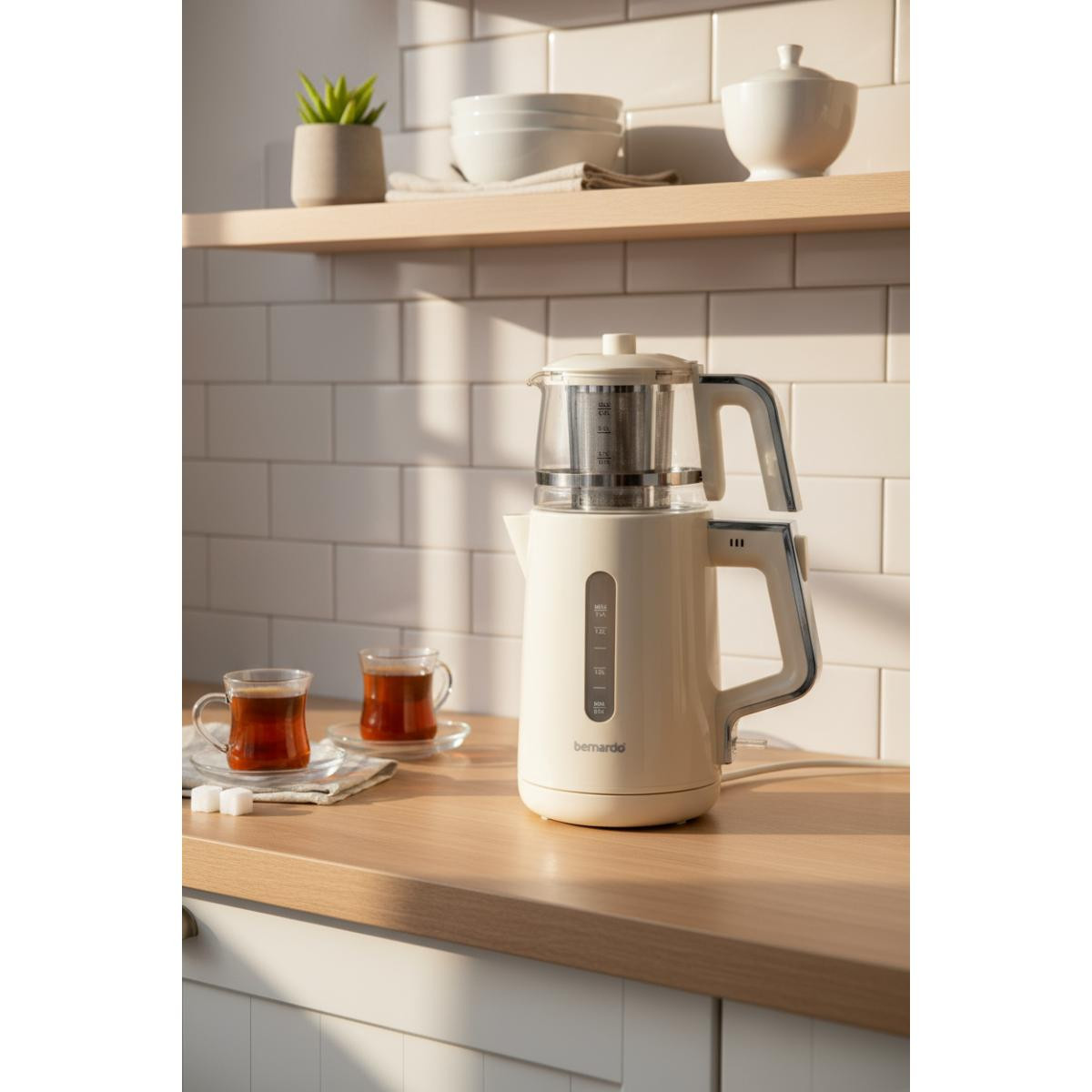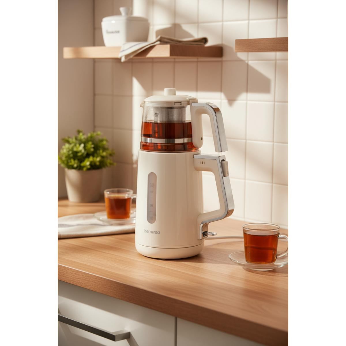 Bernardo Venedik Cam Demlikli Çay Makinesi Krem