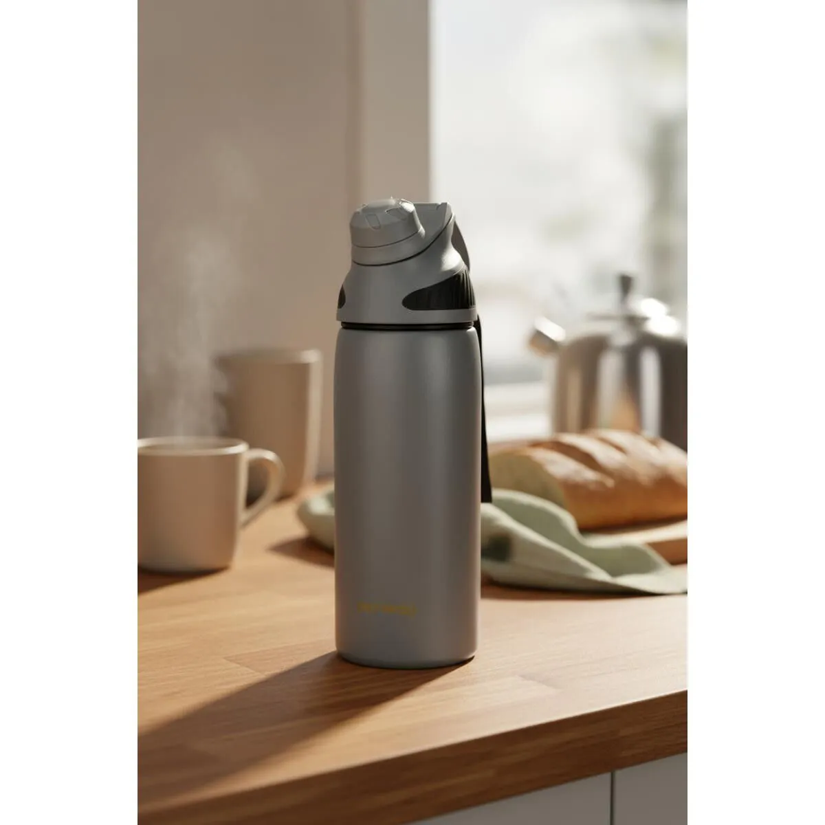 Dış GörünümüTermos, şık ve modern bir tasarıma sahiptir. Gri rengi, her ortama uyum sağlayan zarif bir görünüm sunar.