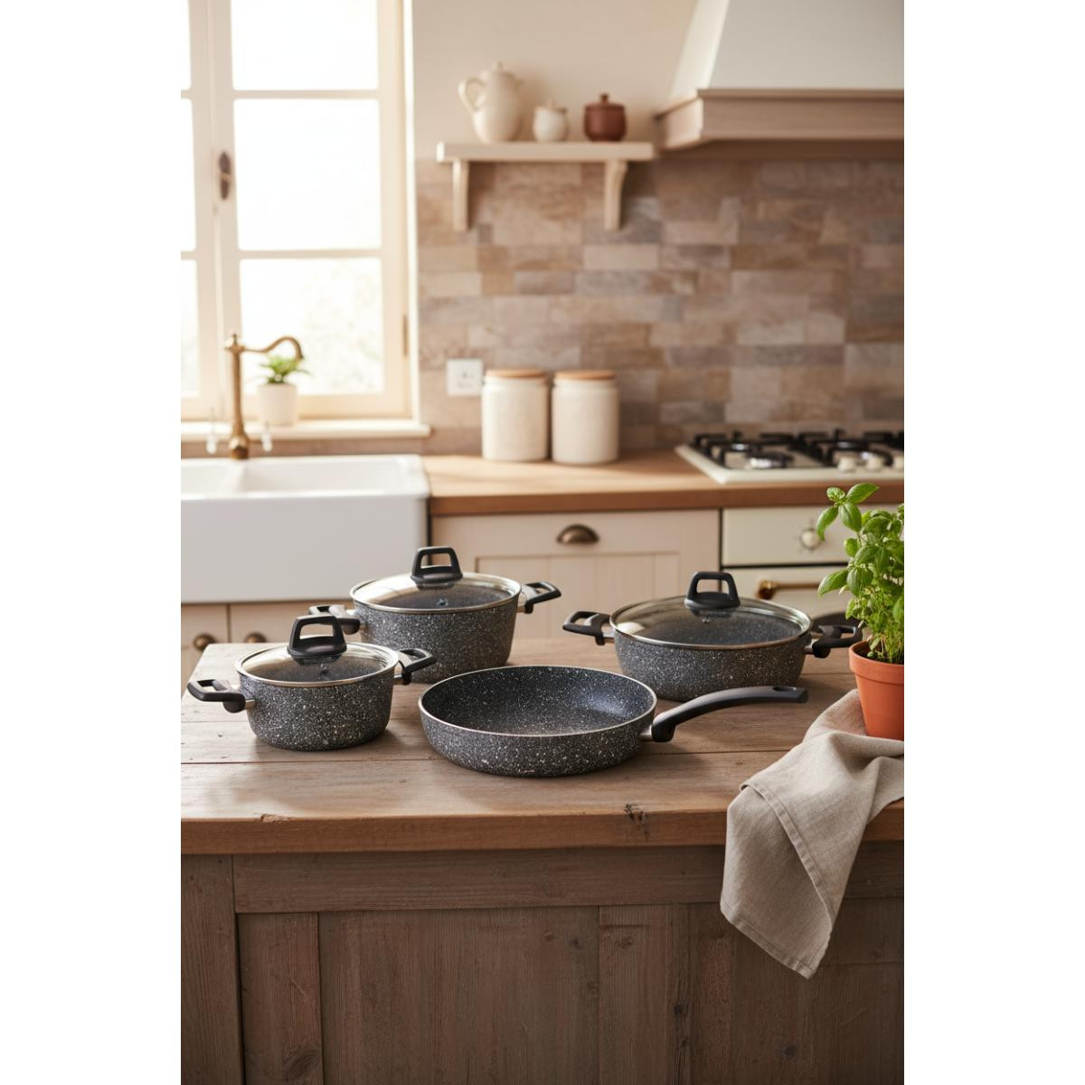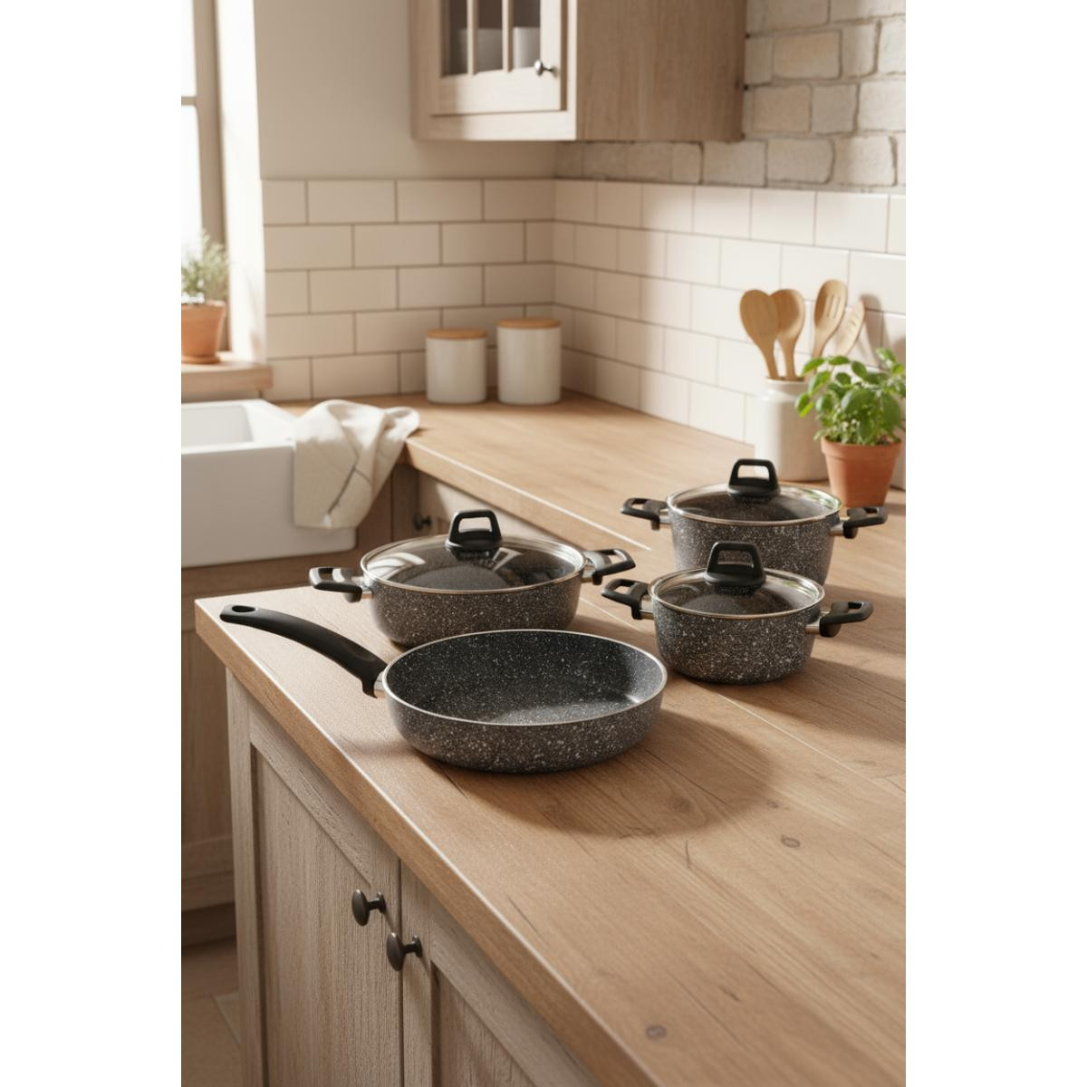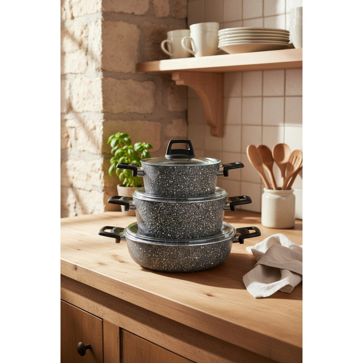 Bu tencere setinin temel amacı, sağlıklı ve lezzetli yemekler pişirmenize yardımcı olmaktır. Isıyı eşit şekilde dağıtan tabanı ve yapışmaz iç yüzeyi sayesinde yemekleriniz hem daha lezzetli olur hem de tencereler kolayca temizlenir. Ayrıca, şık tasarımıyla mutfağınıza estetik bir dokunuş katar.