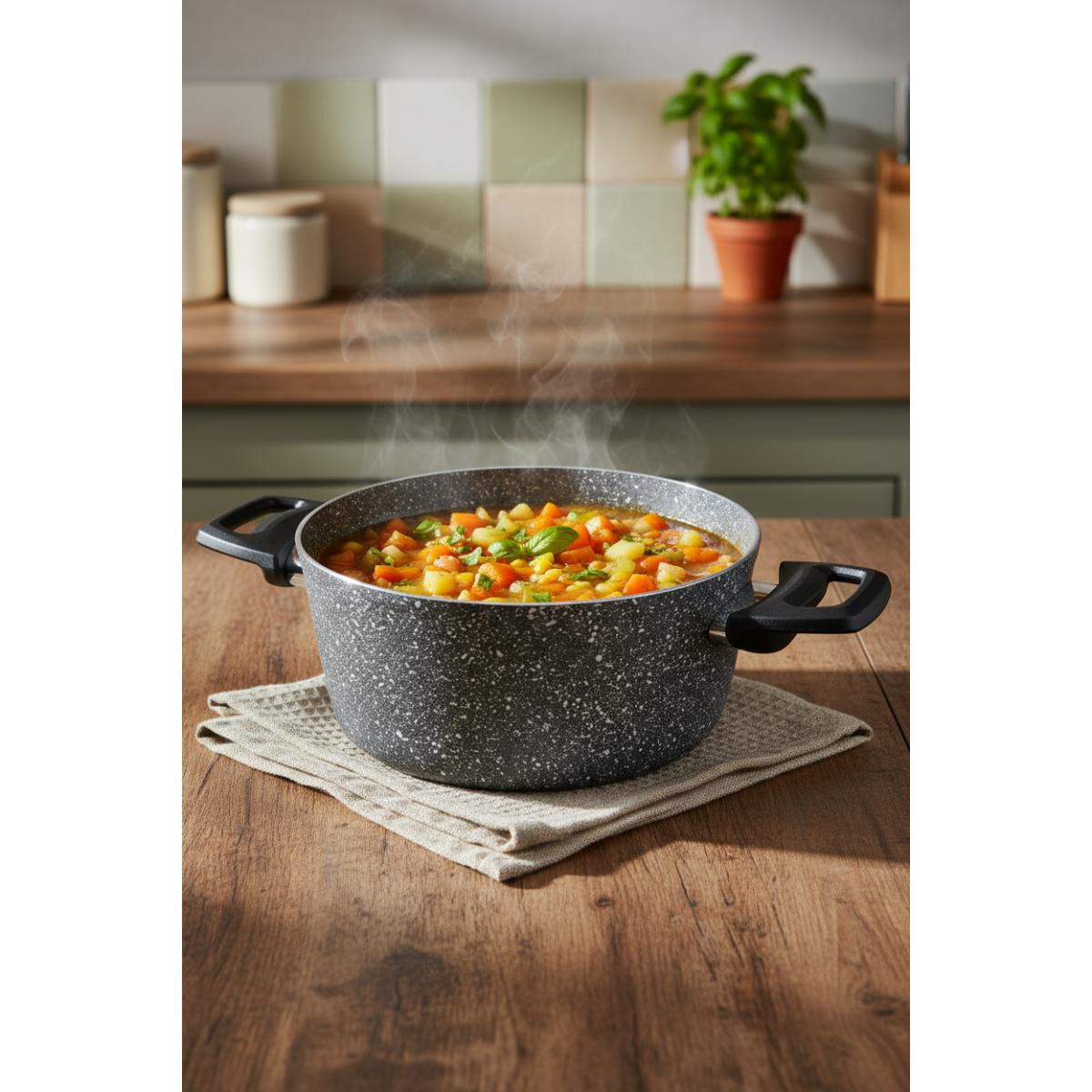 Tencerelerin yapımında kullanılan malzemeler, sağlığa zararlı maddeler içermez. Yapışmaz yüzeyi sayesinde yemeklerinizi daha az yağ kullanarak pişirebilir, daha sağlıklı beslenebilirsiniz.