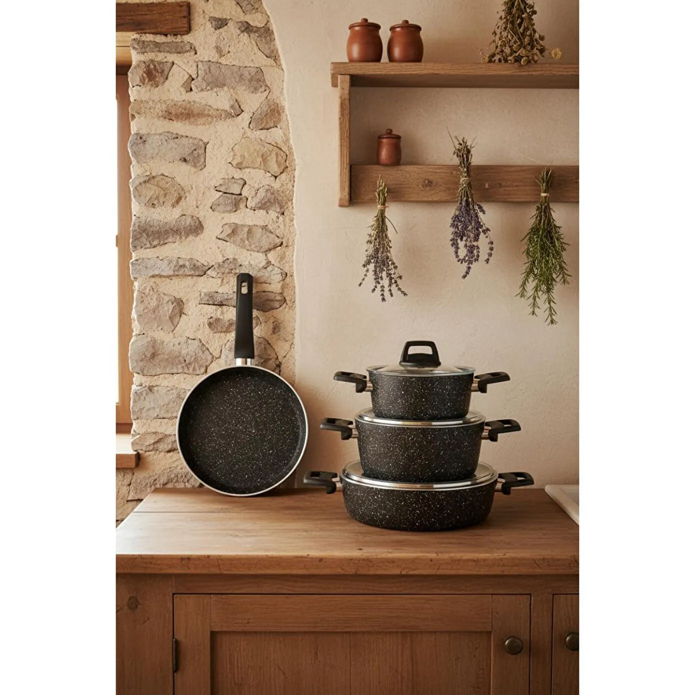 Bu tencere setinin temel amacı, sağlıklı ve lezzetli yemekler pişirmenize yardımcı olmaktır. Isıyı eşit şekilde dağıtan tabanı ve yapışmaz iç yüzeyi sayesinde yemekleriniz hem daha lezzetli olur hem de tencereler kolayca temizlenir. Ayrıca, şık tasarımıyla mutfağınıza estetik bir dokunuş katar.
