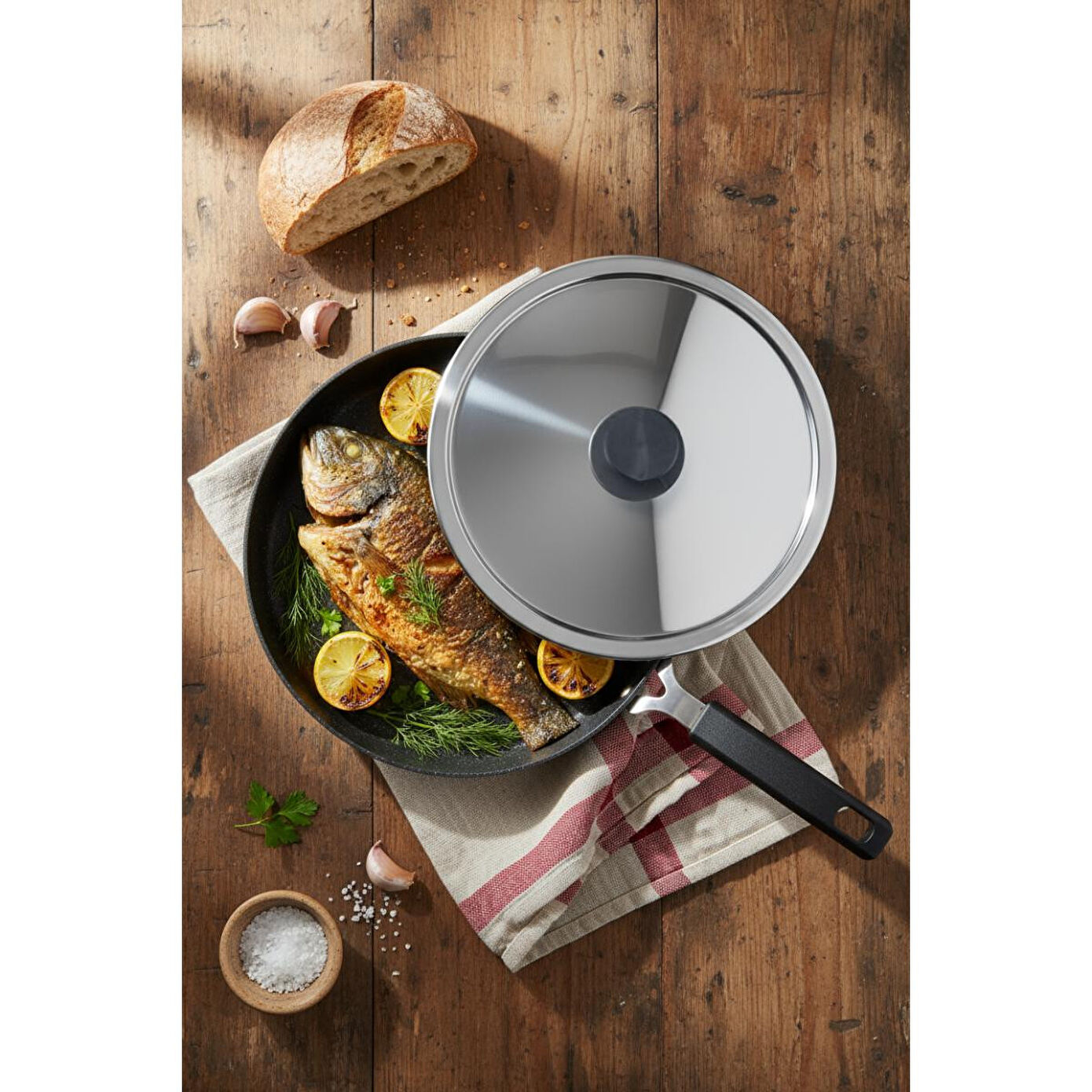 Yanmaz Yapışmaz Kaplama: Balık ve deniz ürünleri gibi hassas yemeklerin yapışmasını önler, kolay temizlenir ve sağlıklı pişirme sağlar.