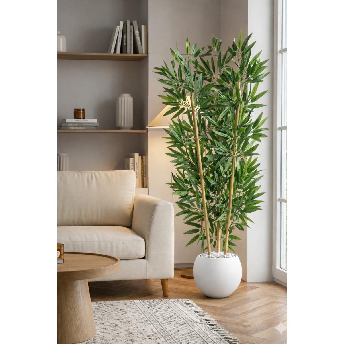 125CM YAPAY BAMBU AĞACI KÜRE SAKSIDA Beyaz