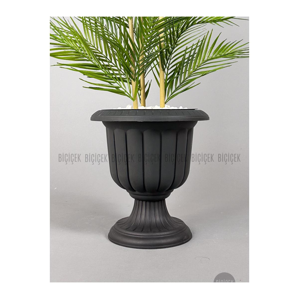 Biçiçek Yapay Areka Ağacı Palmiye Ağacı 33 Yapraklı Bambu Gövdeli Antrasit Nergis Saksı Salon Çiçeği 130cm