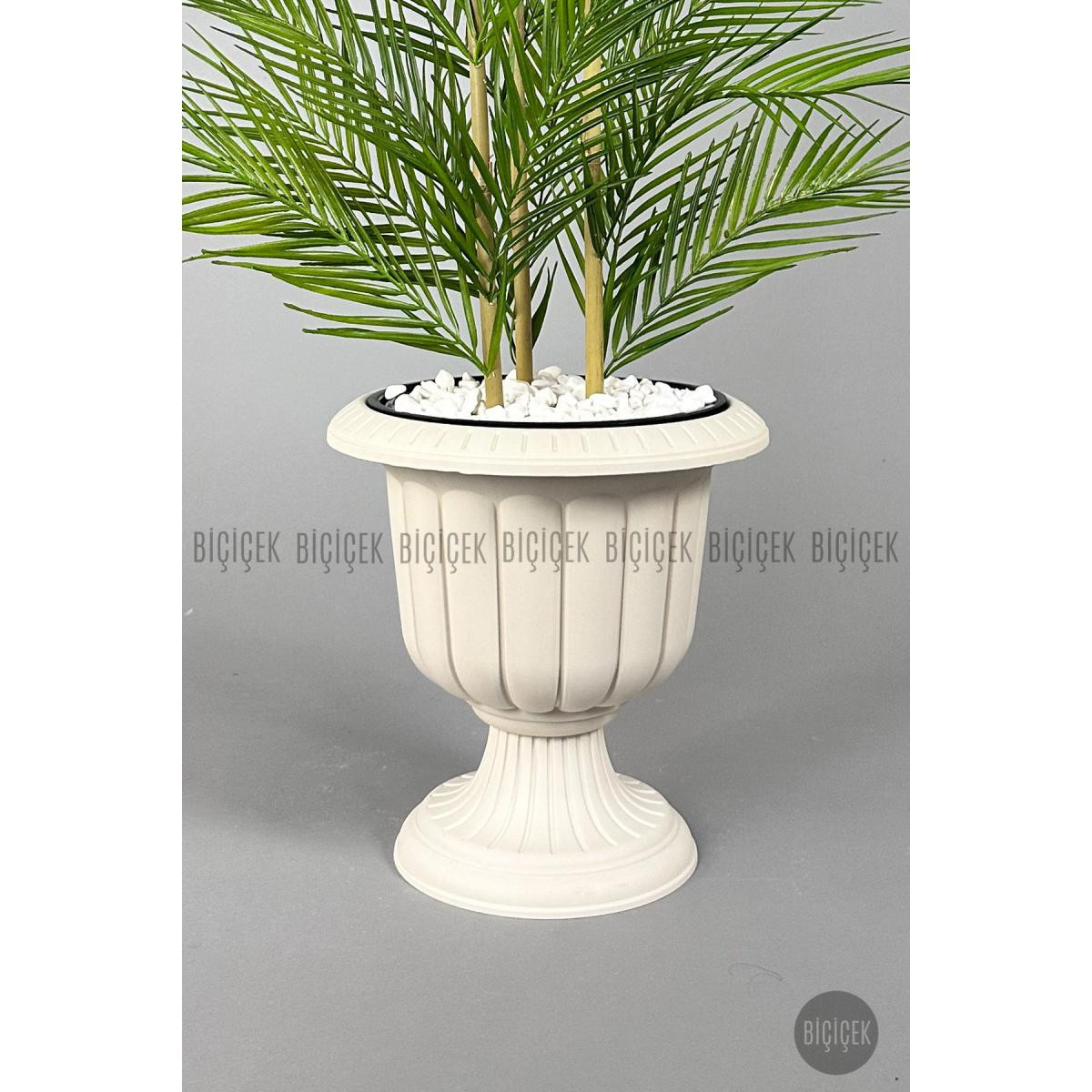 Biçiçek Yapay Areka Ağacı Palmiye Ağacı 33 Yapraklı Bambu Gövdeli Kırıkbeyaz Nergis Saksı Salon Çiçeği 130cm
