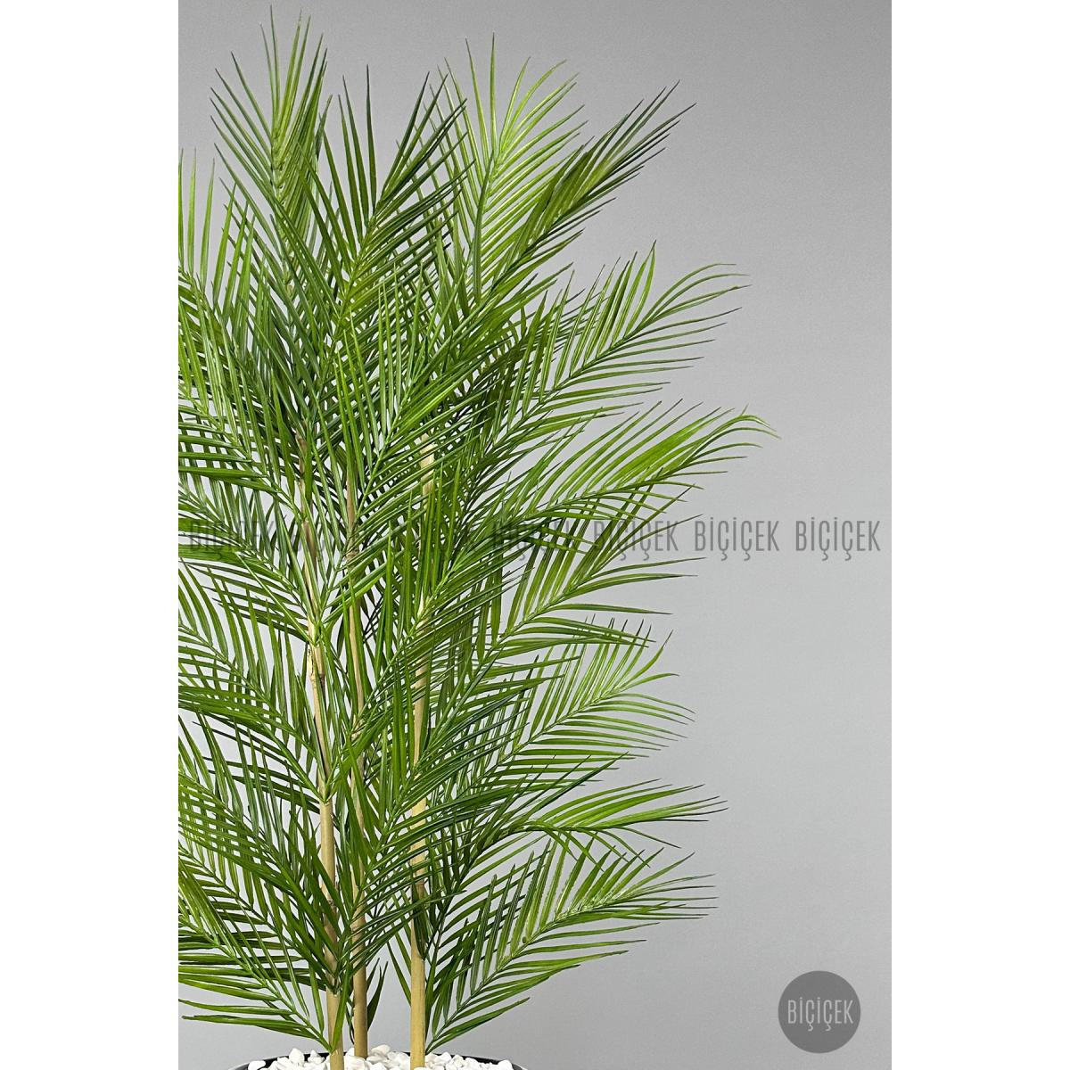 Areka ağacı Palmiye ağacı 33yapraklı 3 dal bambudan oluşmaktadır, Zemin kaplaması beyaz taştır.Doğal bambu çubukları ile gerçekçi ve doğal görüntüsü vardır. ; Yaprak Malzemesi : 1.kalite ithal areka yaprakları kullanılmıştır. ; Saksı Malzemesi : 1.Kalite plastikten üretilmiştir. ; İç ve dış mekan için uygundur. ; Yoğun yapraklı ithal doğal bambular ile gerçekçi bir görünüm elde edilmiştir. ; Bitki ölçüsü : Saksı Dahil 130cm-135cm Saksı ölçüleri: Çap : 35cm Yükseklik: 36cm;