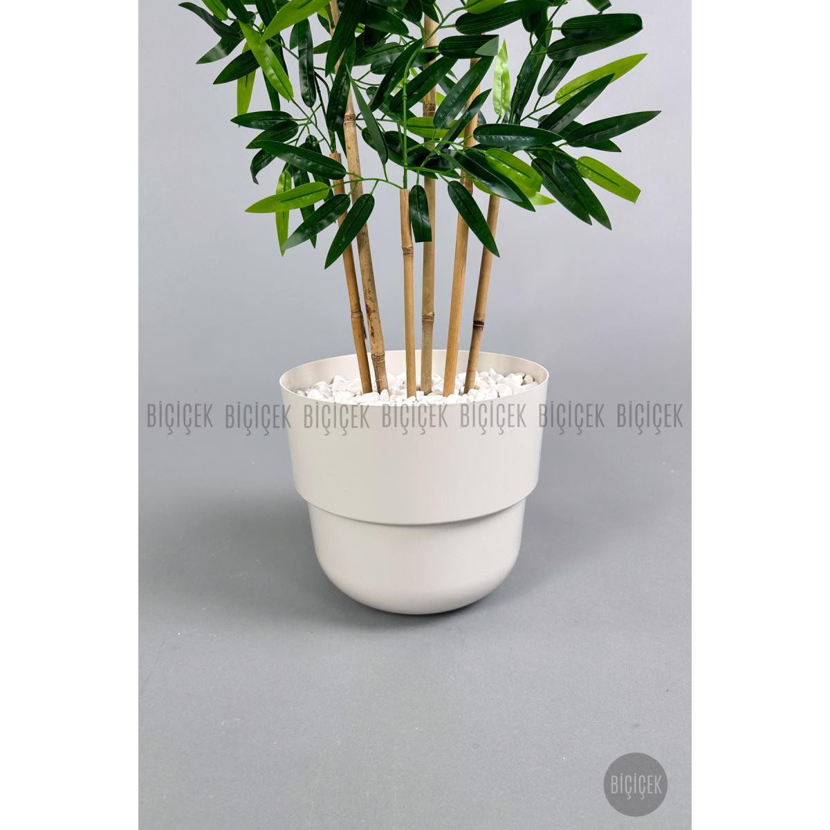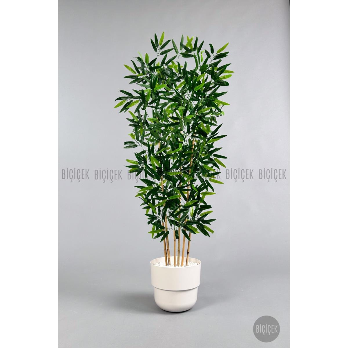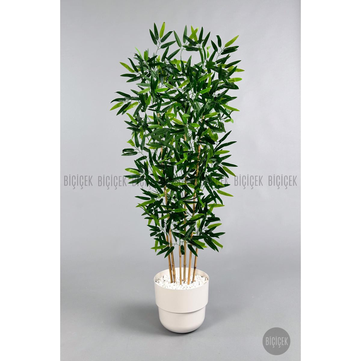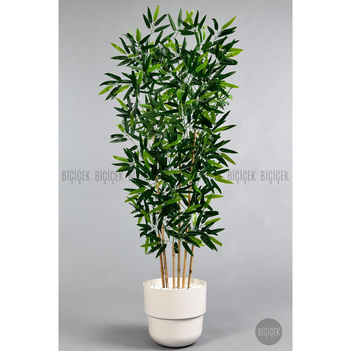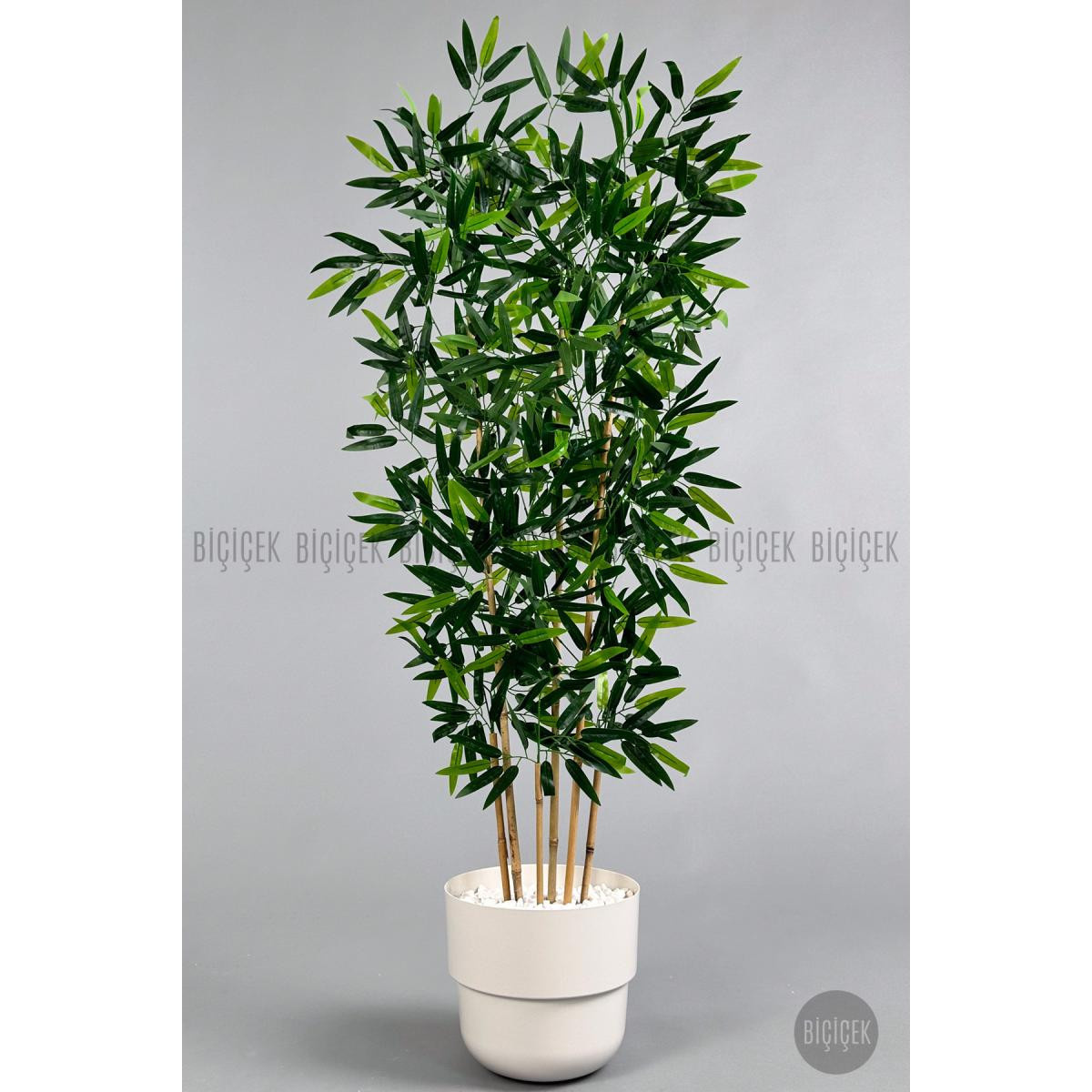 Biçiçek Yapay Bambu Ağacı 6 Dallı 150 Cm Yoğun Yapraklı Beyaz