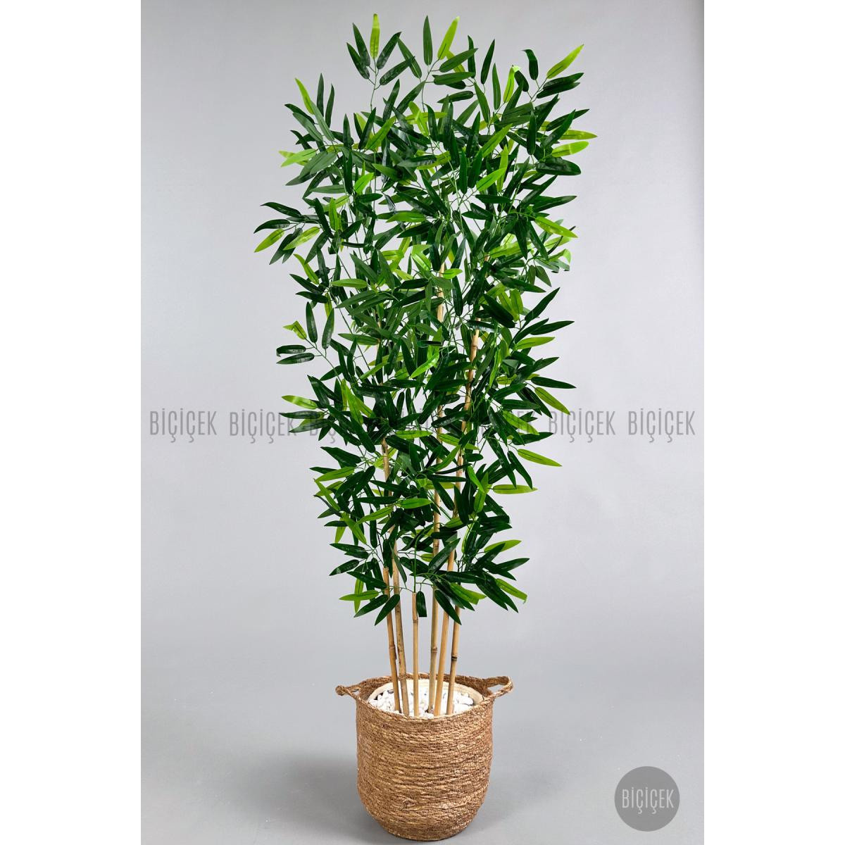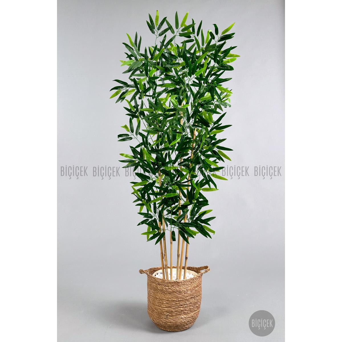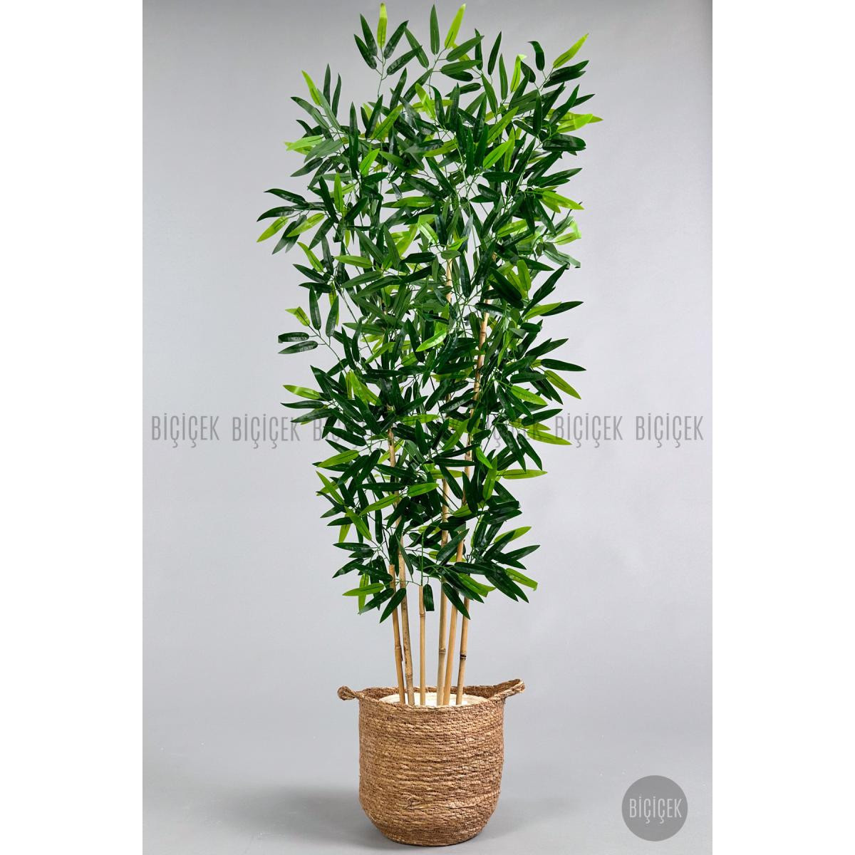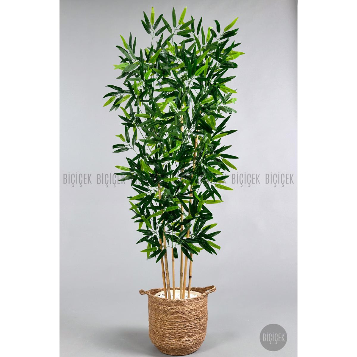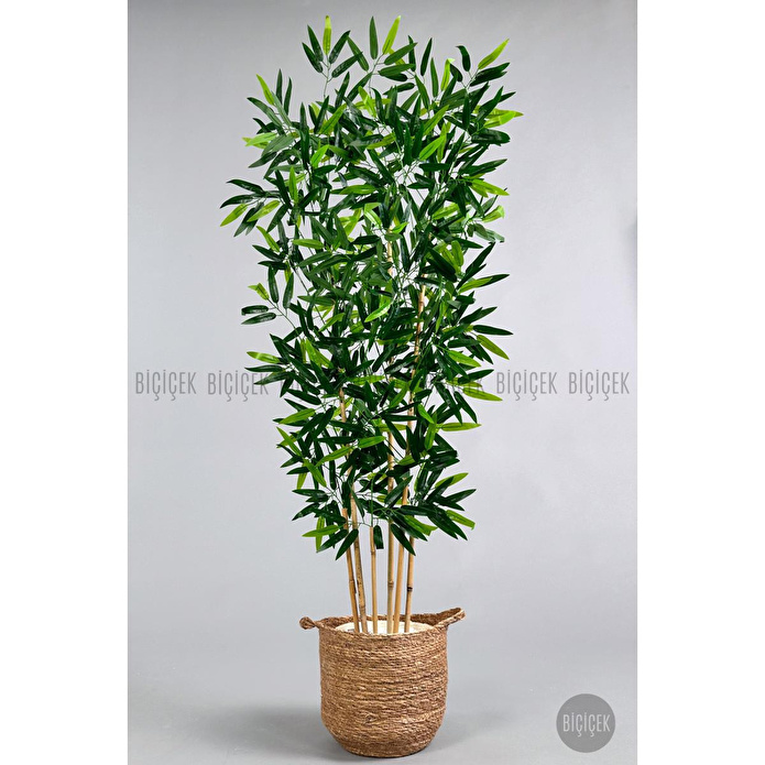 Biçiçek Yapay Bambu Ağacı 6 Dallı 150 Cm Yoğun Yapraklı Hasır1