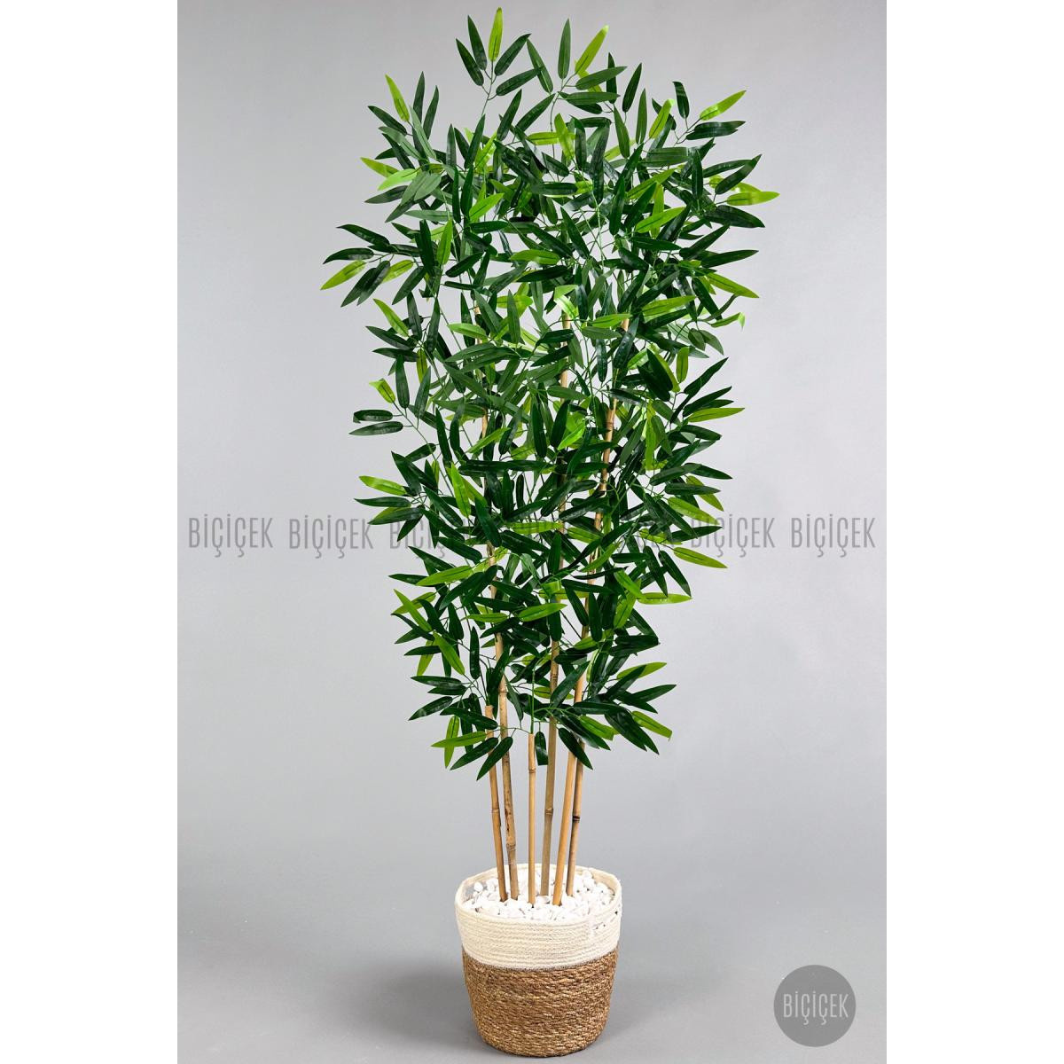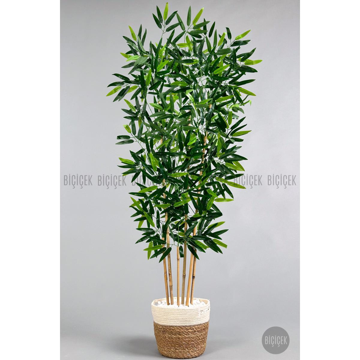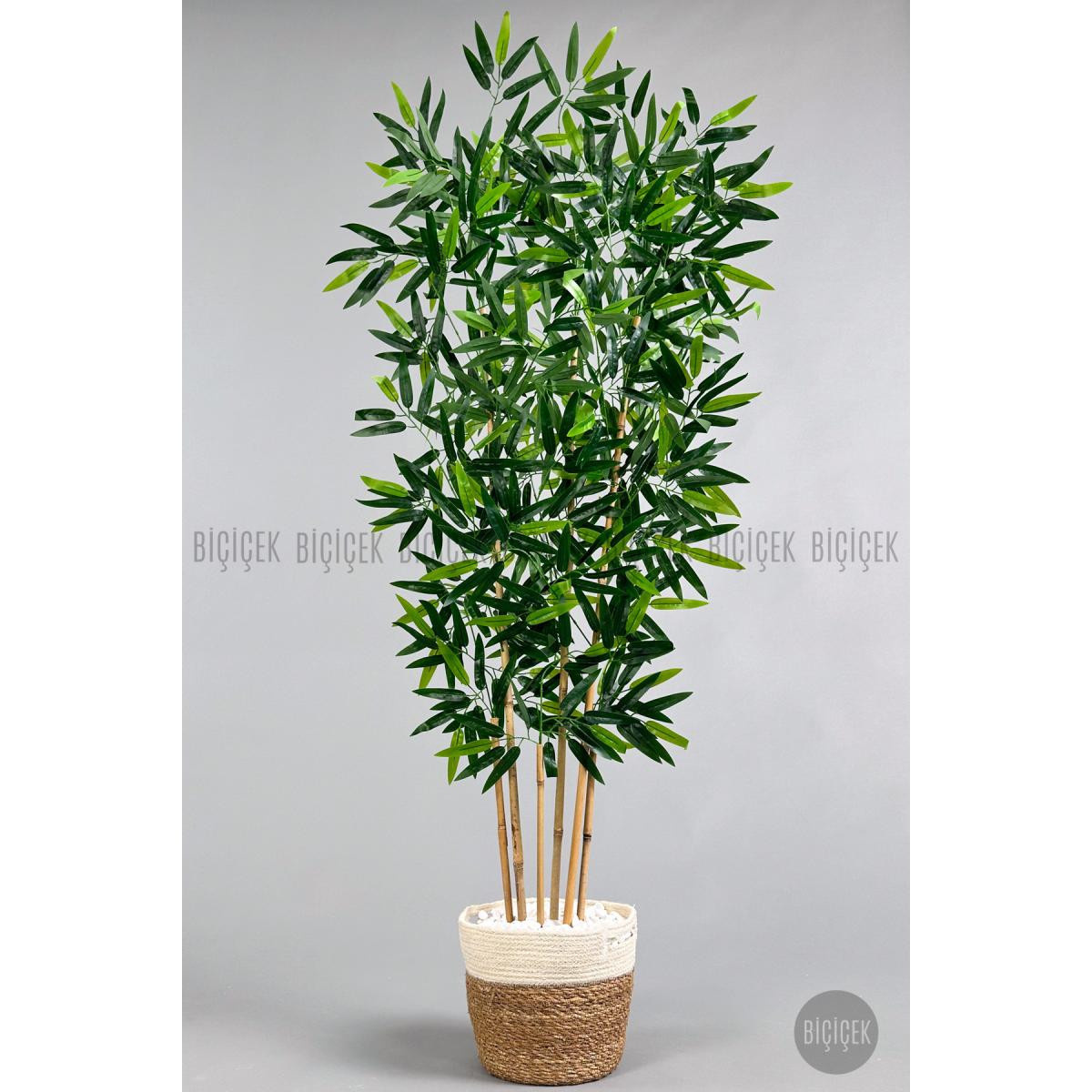 Biçiçek Yapay Bambu Ağacı 6 Dallı 150 Cm Yoğun Yapraklı Hasır2