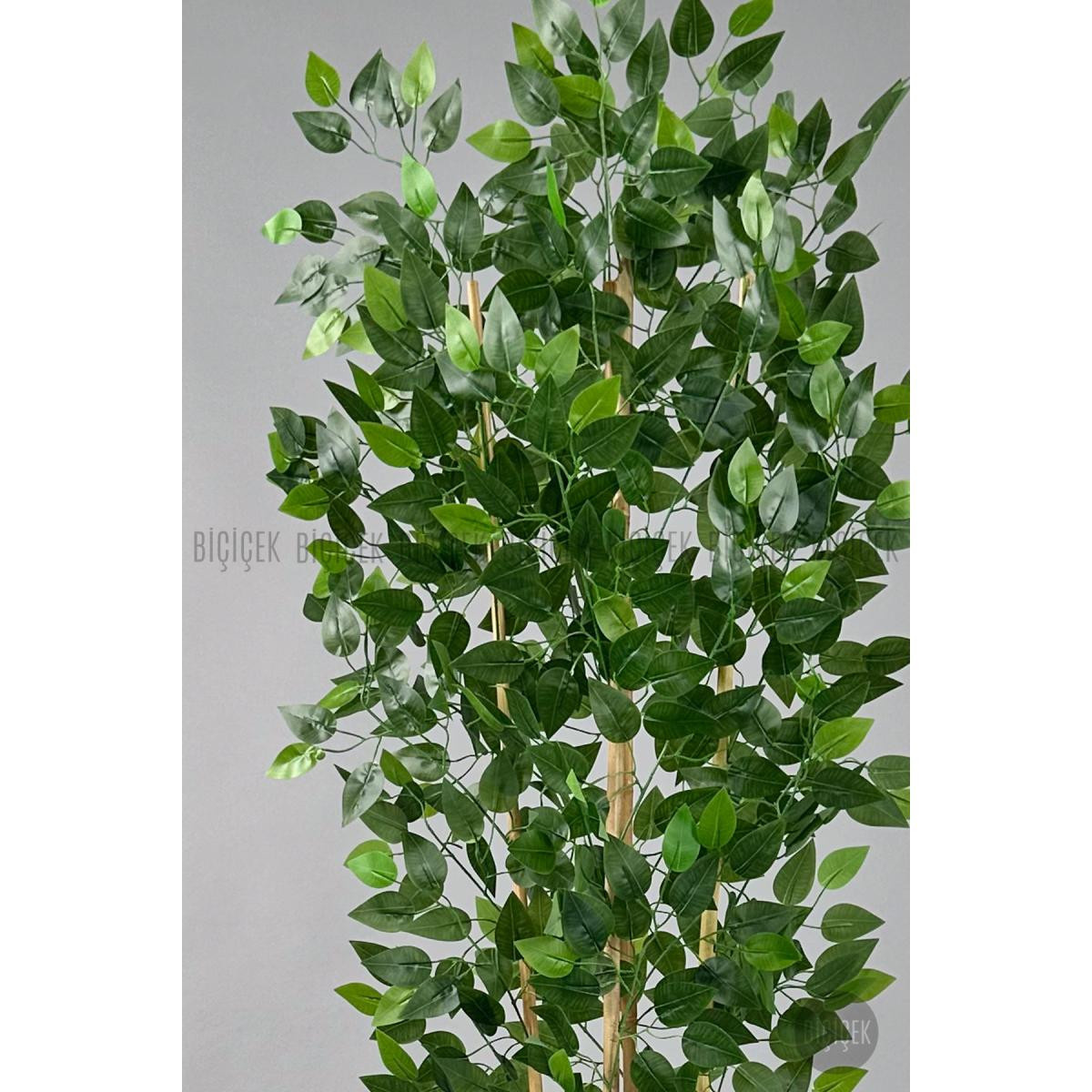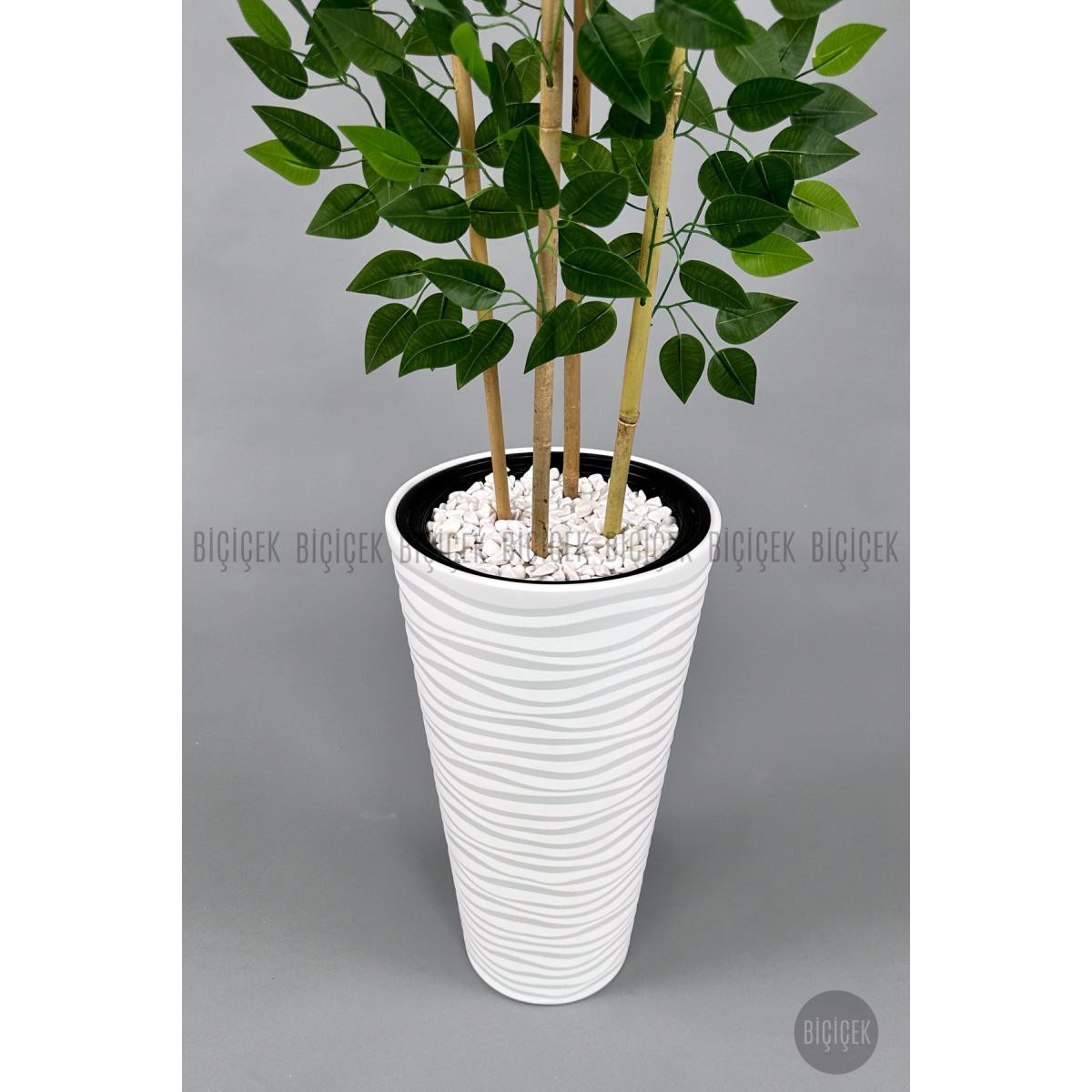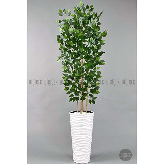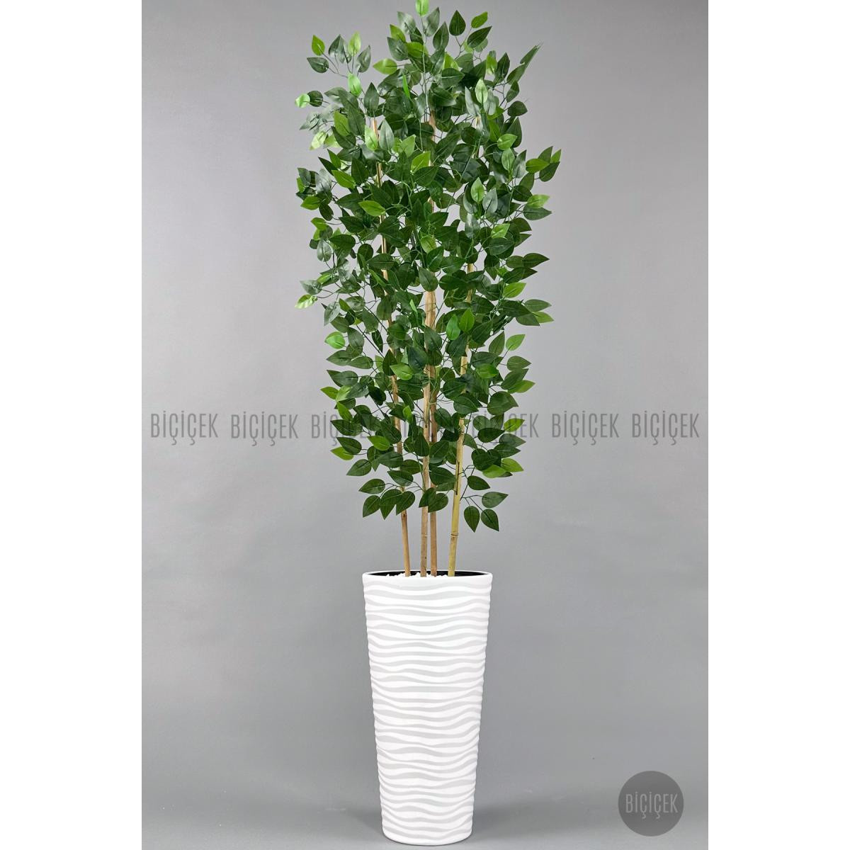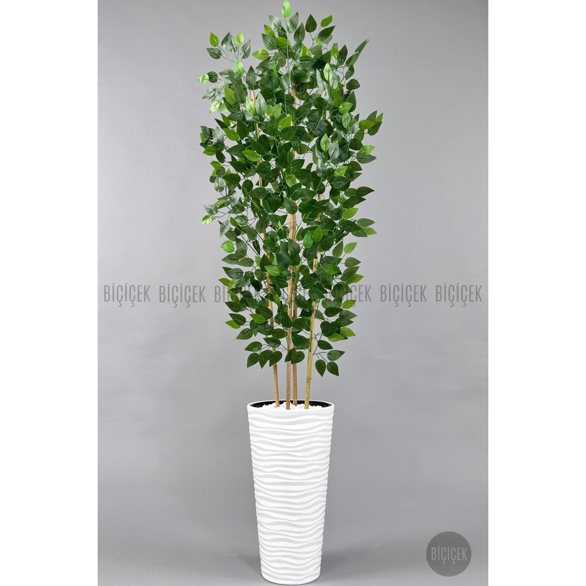 Biçiçek Yapay Benjamin Ağacı 180cm Yoğun Yapraklı Bambu Gövdeli Beyaz Renk Kumsal Saksıda