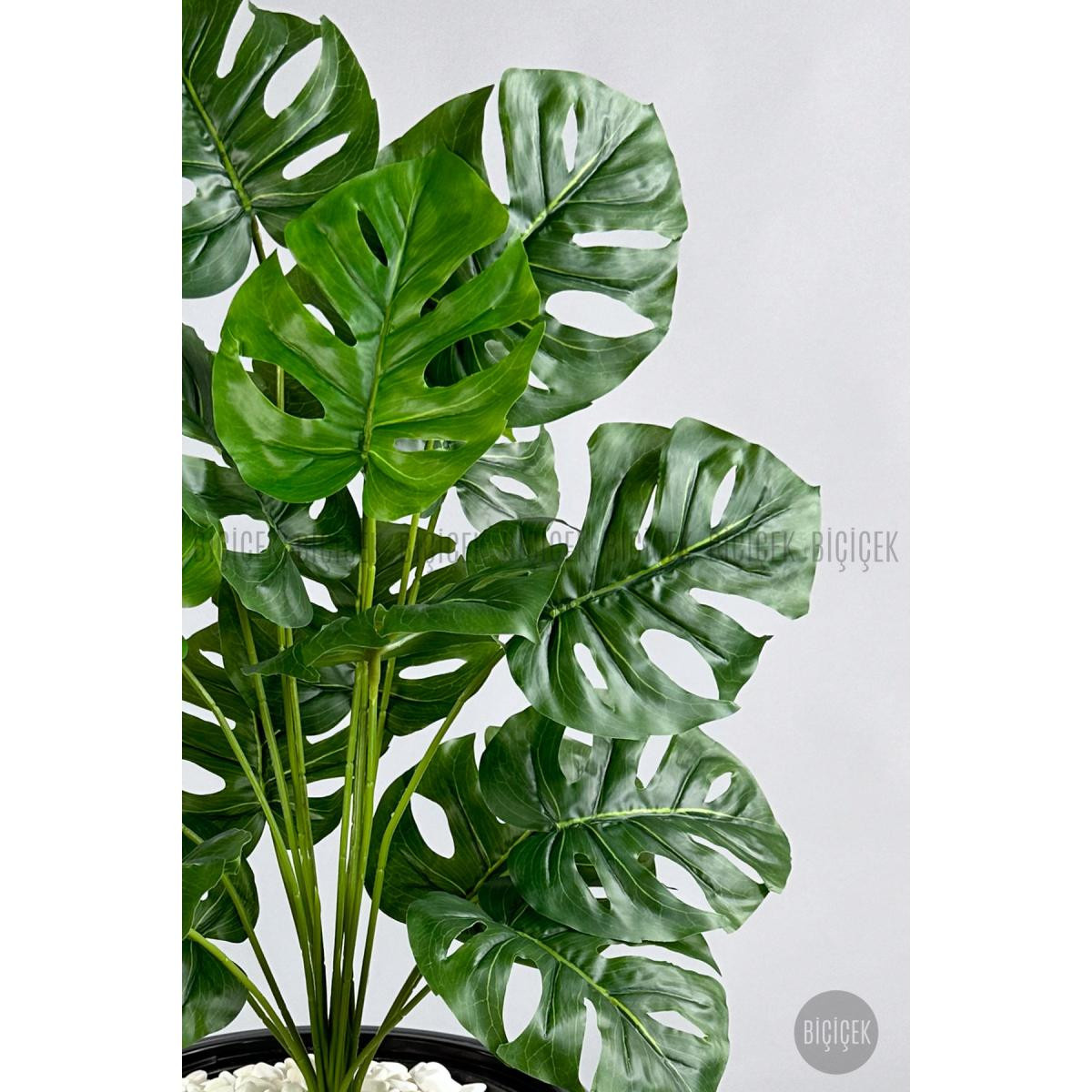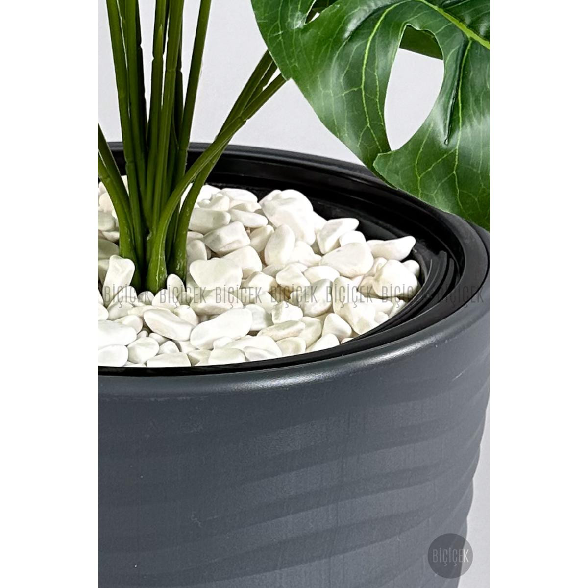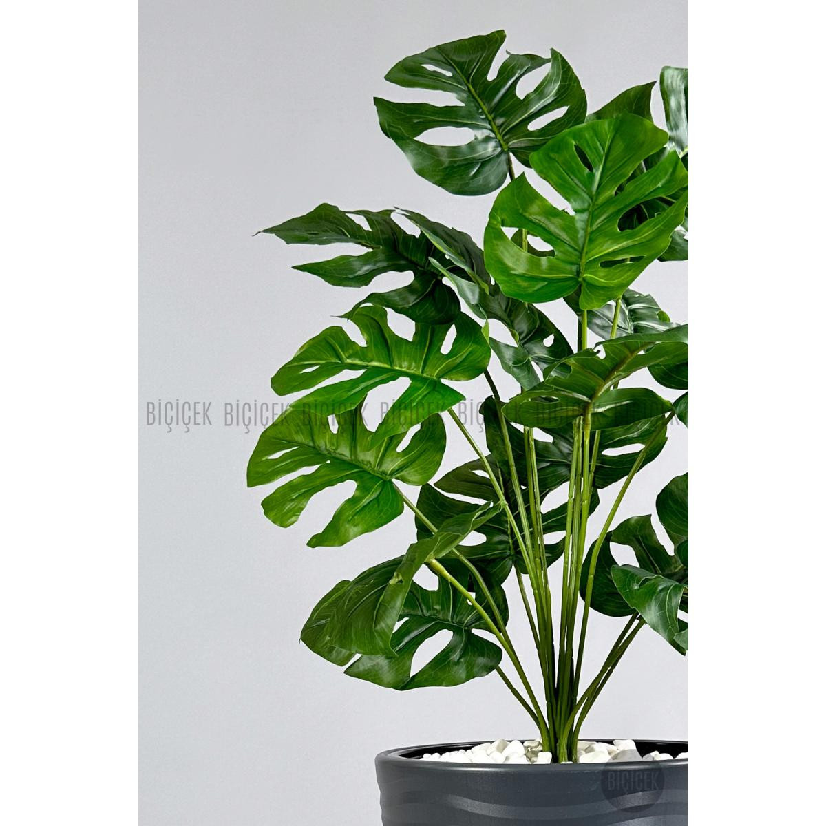 Biçiçek Yapay Çiçek Salon Bitkisi Monstera Deve Tabanı Antrasit Renk Kumsal Saksıda