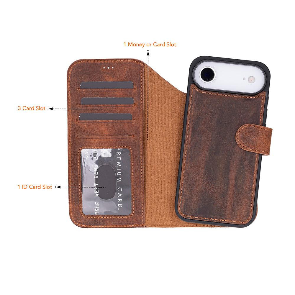 BloomCase Magic Wallet Mahogany Saddle Hakiki Deri iPhone 17 Air Cüzdanlı Telefon Kılıfı