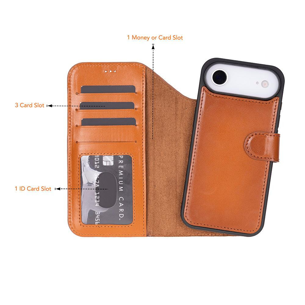 BloomCase Magic Wallet Urban Tan Hakiki Deri iPhone 17 Air Cüzdanlı Telefon Kılıfı